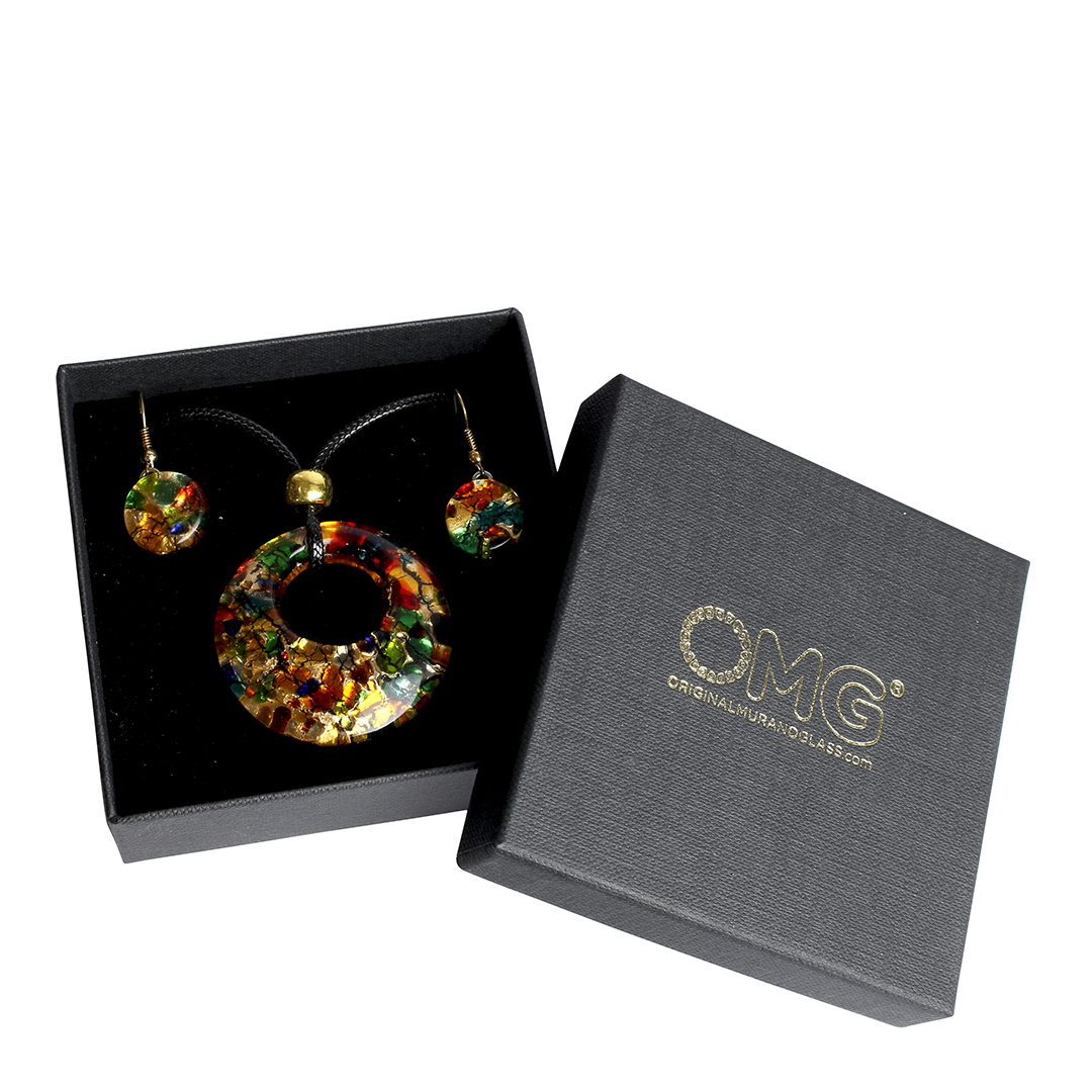 Parure "Cortina Round" in vetro di Murano, realizzata a mano in vetro fusione e arricchita con foglia d'oro 24kt.