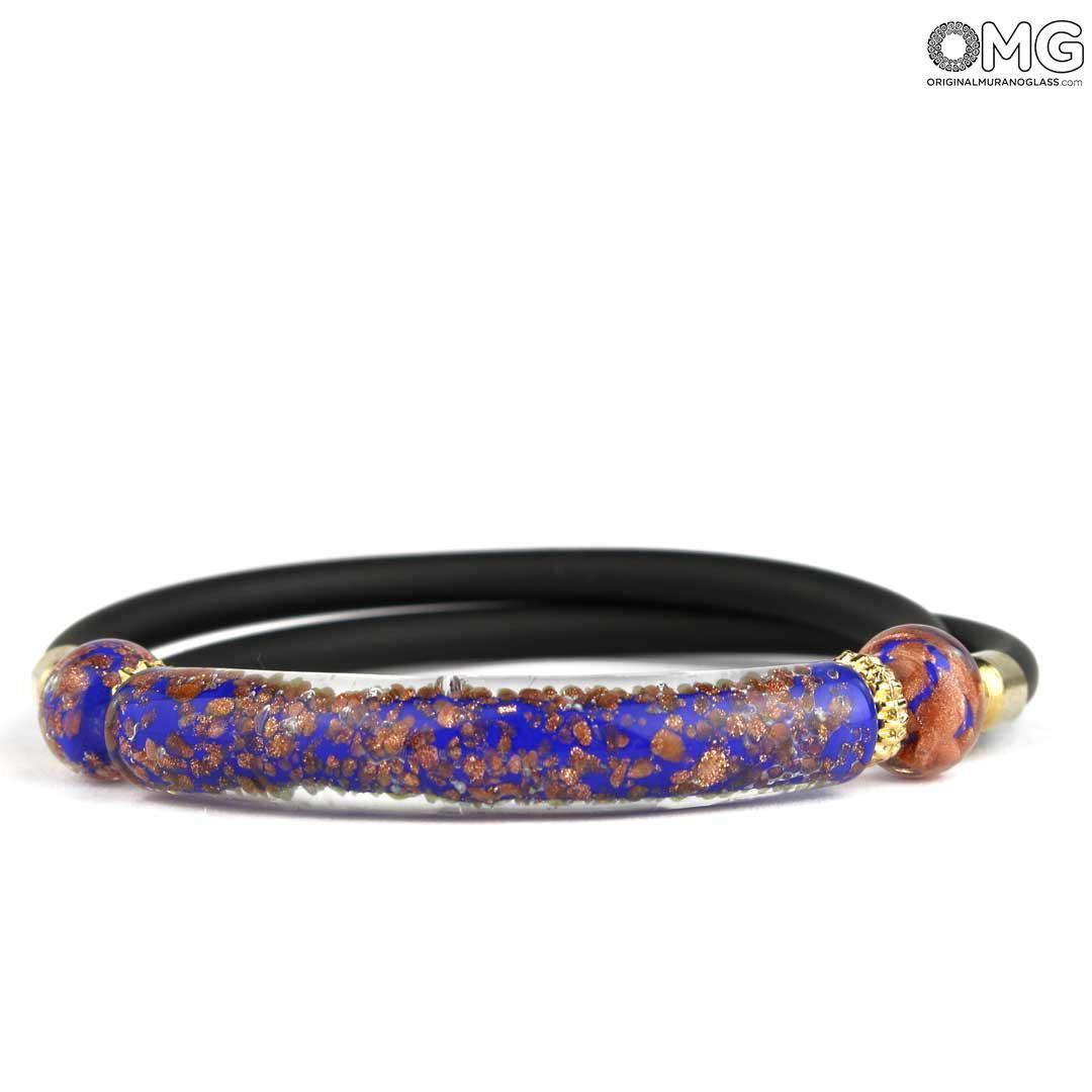 Bracciale Atena Blu - Perla lunga con Avventurina - Vetro di Murano Originale OMG