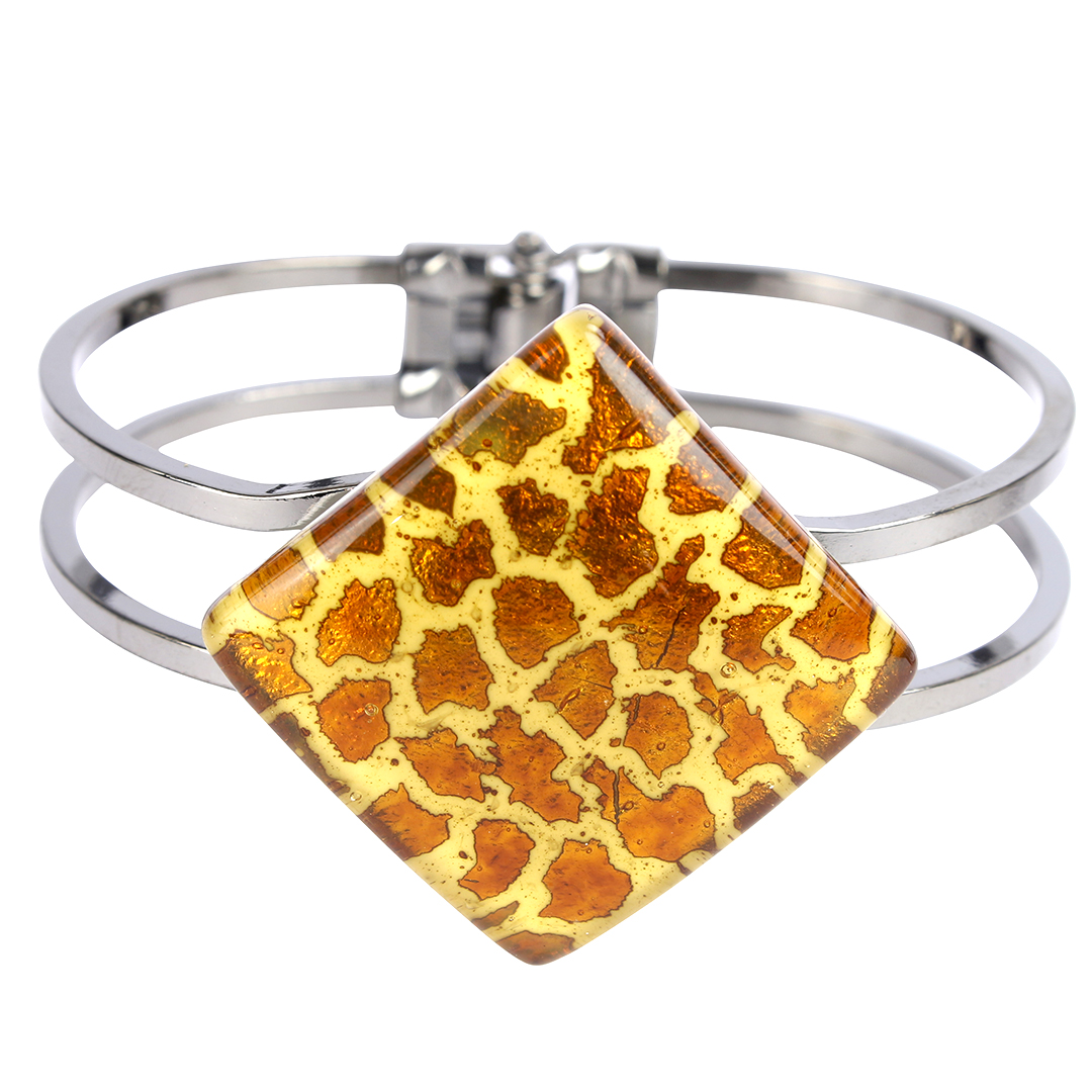 Bracciale con piastra realizzata in vetro fusione e rifinita a mano.