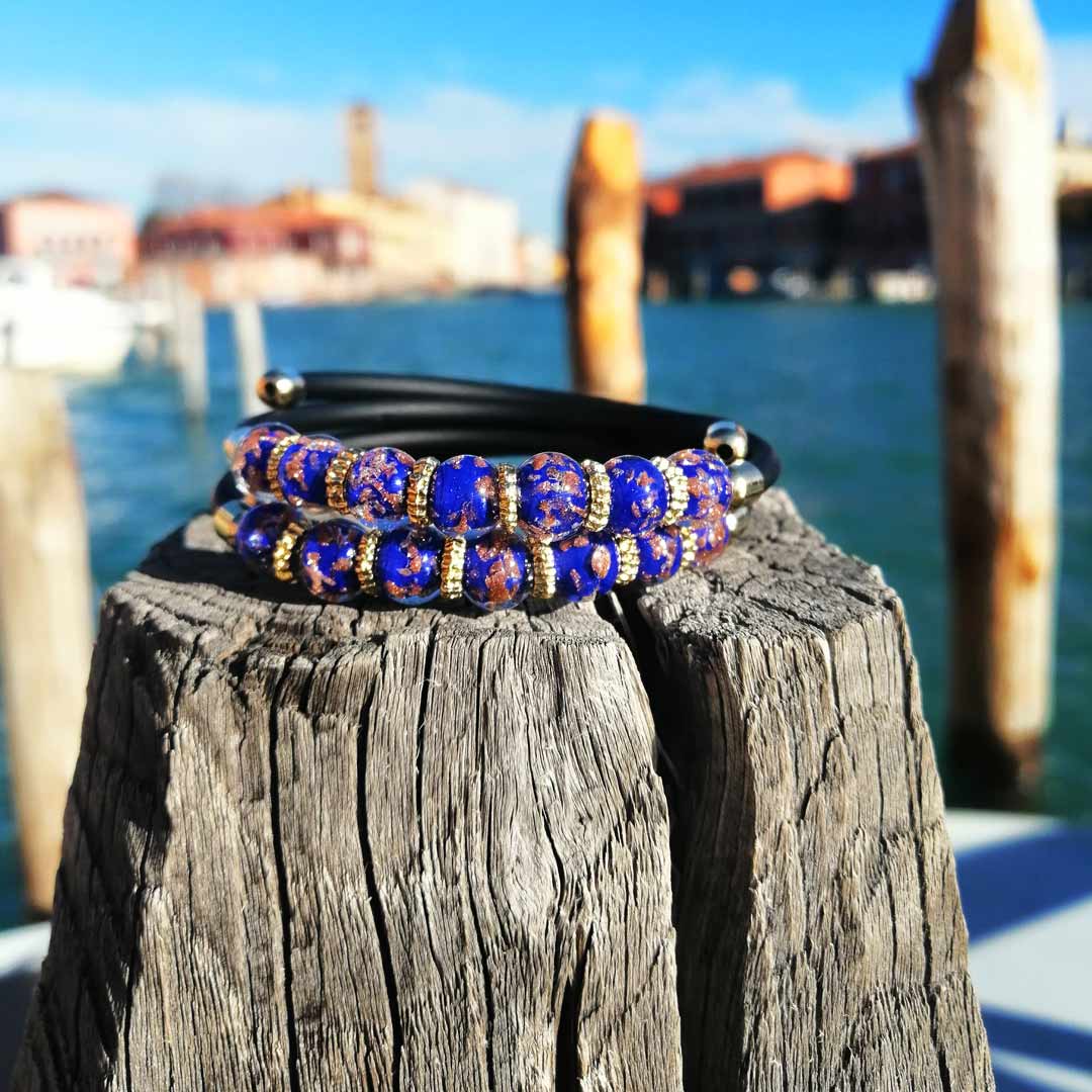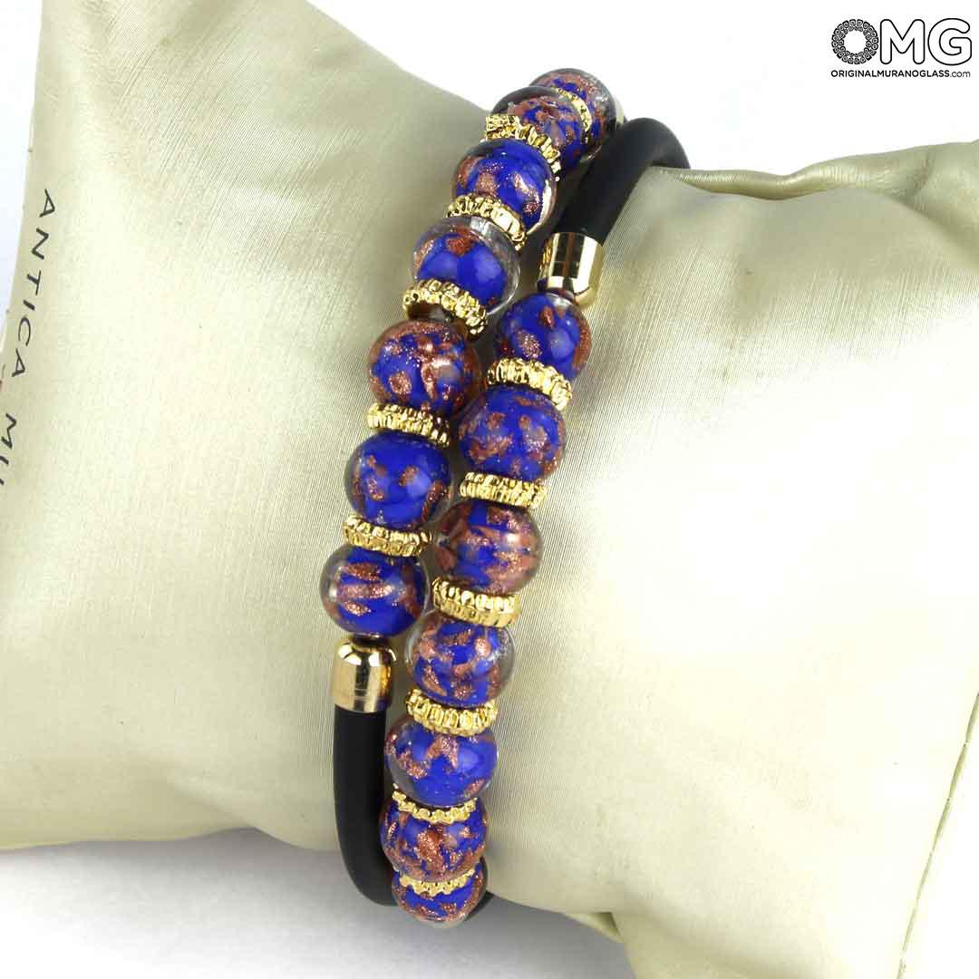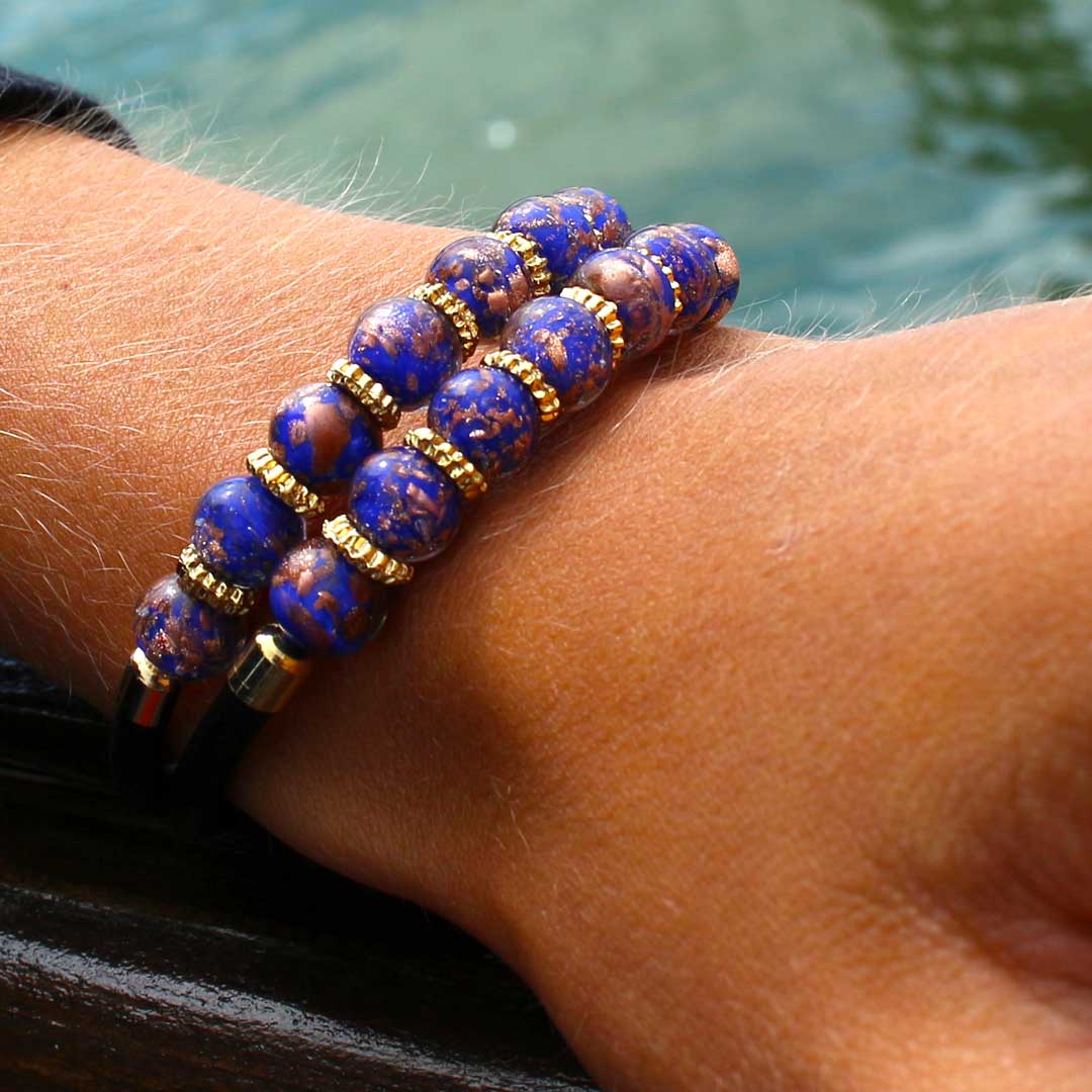 Bracciale Serena Doppio - Blu con Avventurina - Vetro di Murano Originale OMG