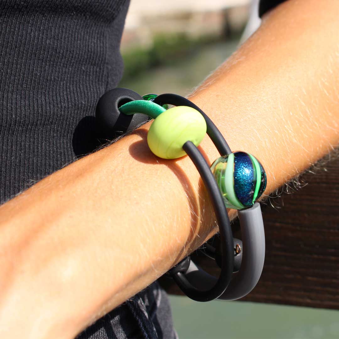 Bracciale con perle fatte a mano in Vetro di Murano lavorate a lume.