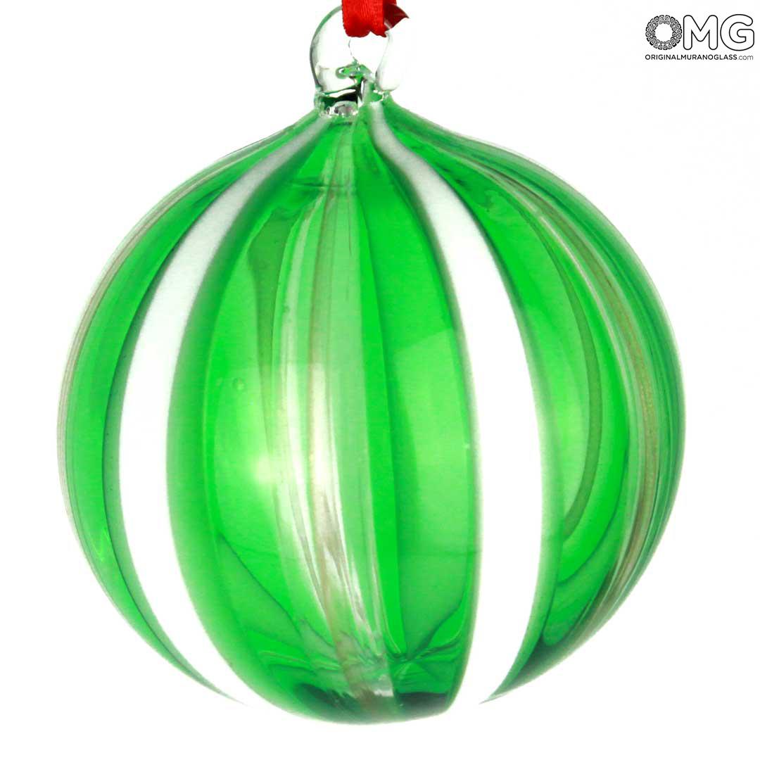 Che desideriate dare un'atmosfera speciale alla vostra casa o decorare in modo diverso il vostro albero di natale queste palle di Natale sono la soluzione giusta. Lavorate a mano utilizzando la tecnica del vetro soffiato, le palle di Natale di vetro sono una pietra miliare nel Natale di Murano. In particolare questo modello viene prodotto usando le caratteristiche canne di vetro muranesi che vengono fuse e unite assieme alla massa di cristallo. La massa viene quindi soffiata per ottenere la caratteristica forma.