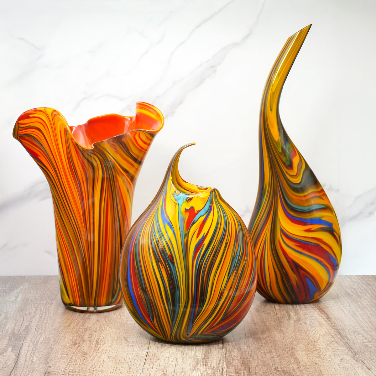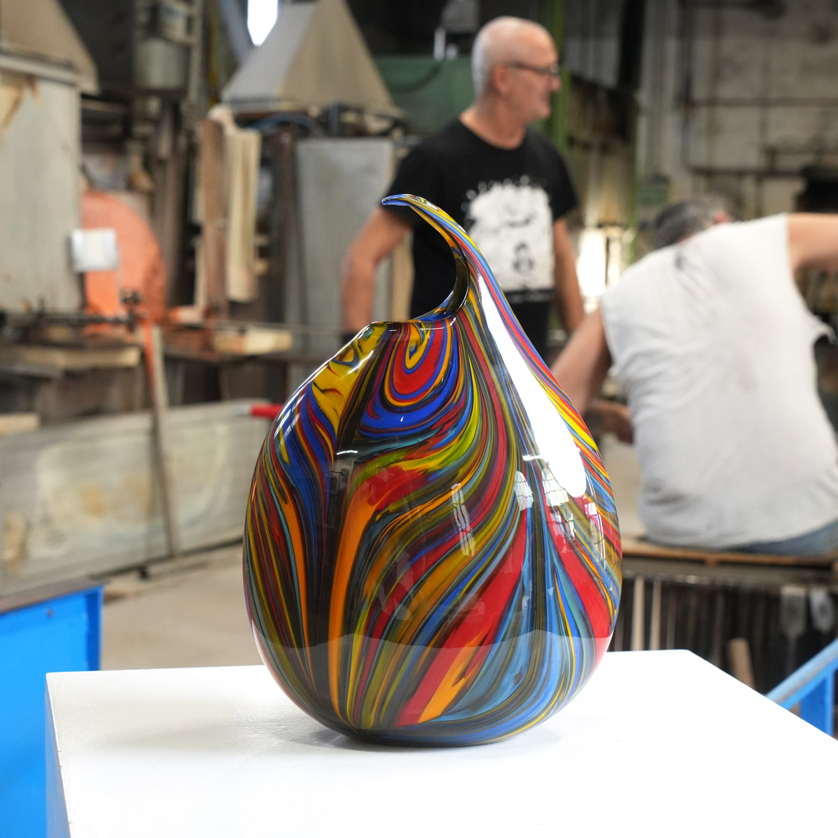 Il vaso soffiato è realizzato con la tecnica del vetro soffiato.