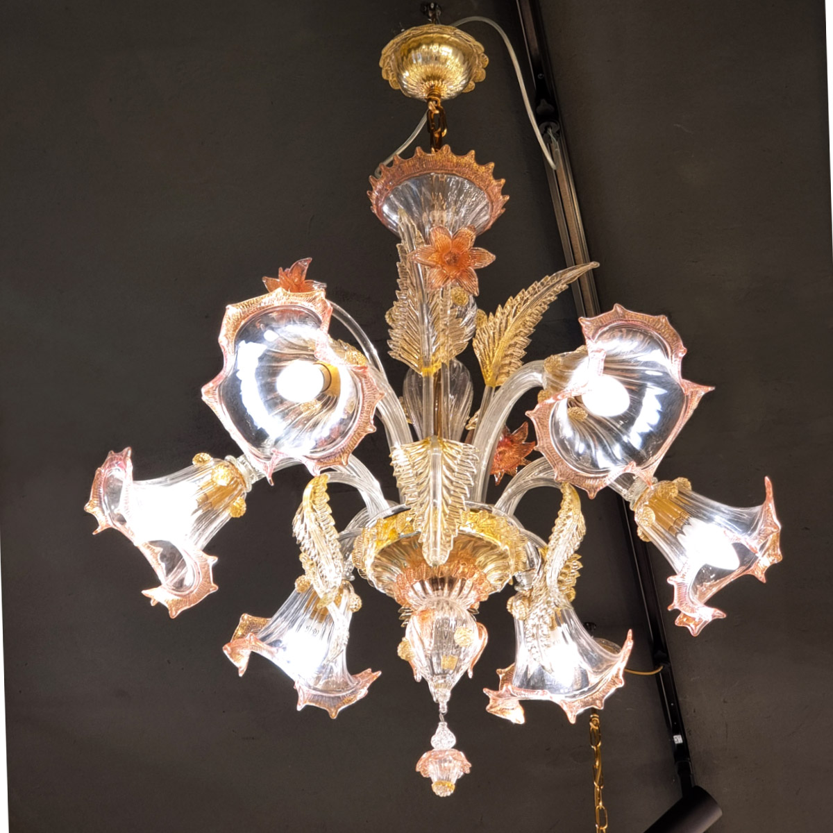 Lampadario Gemma Rosa & Oro - Classico - Vetro di Murano