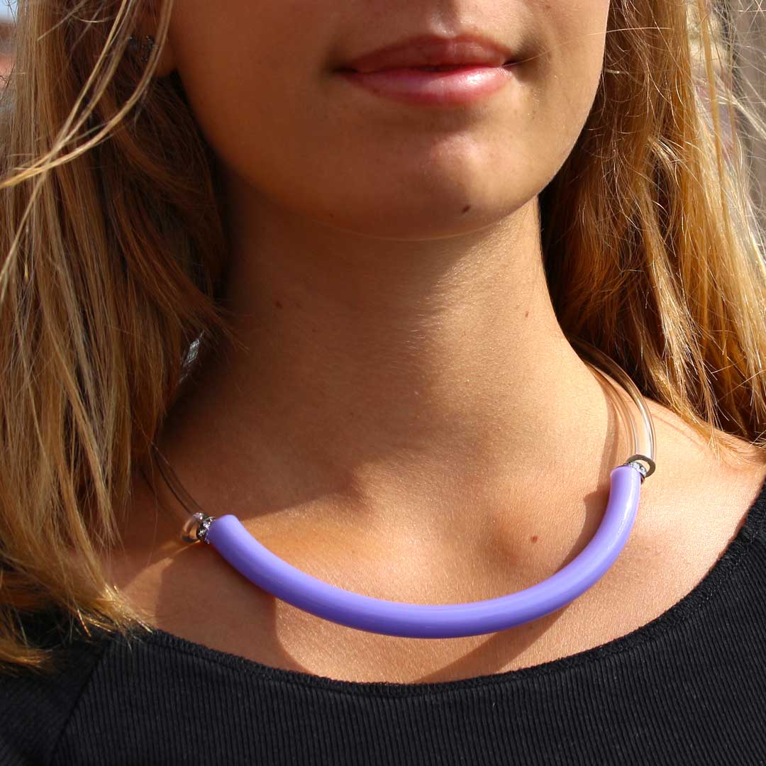 Per indossarla basta aprire le estremità ed allargare l'elastico interno. Grazie al suo design minimal ma vivace questa collana farà sempre il suo dovere e non passerà mai inosservata.