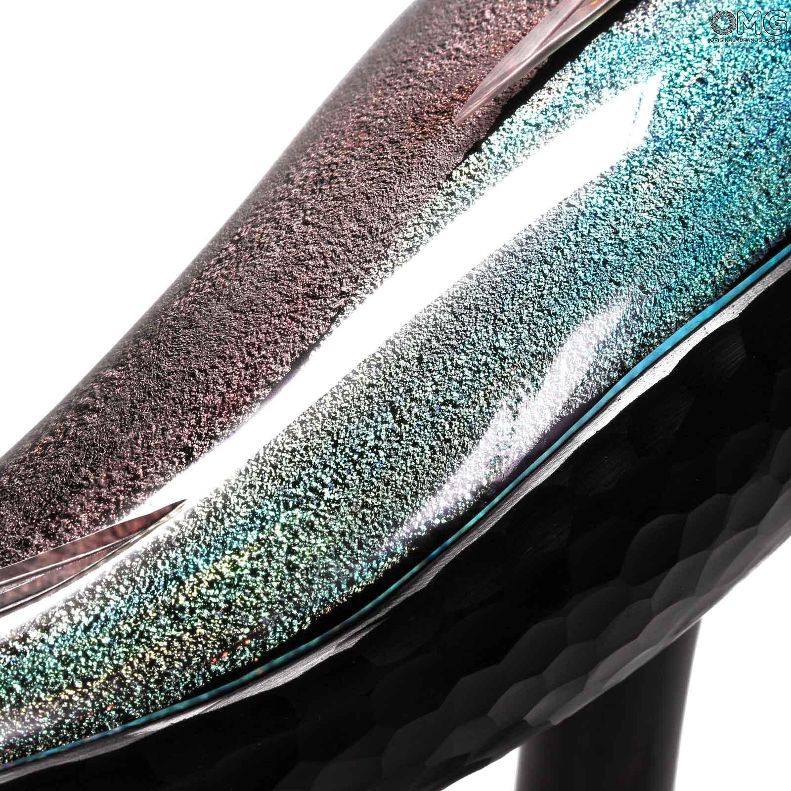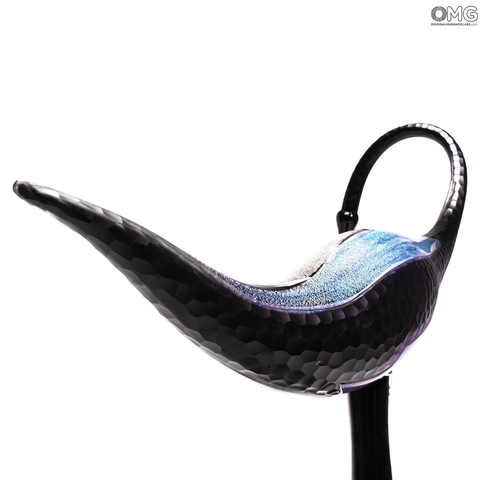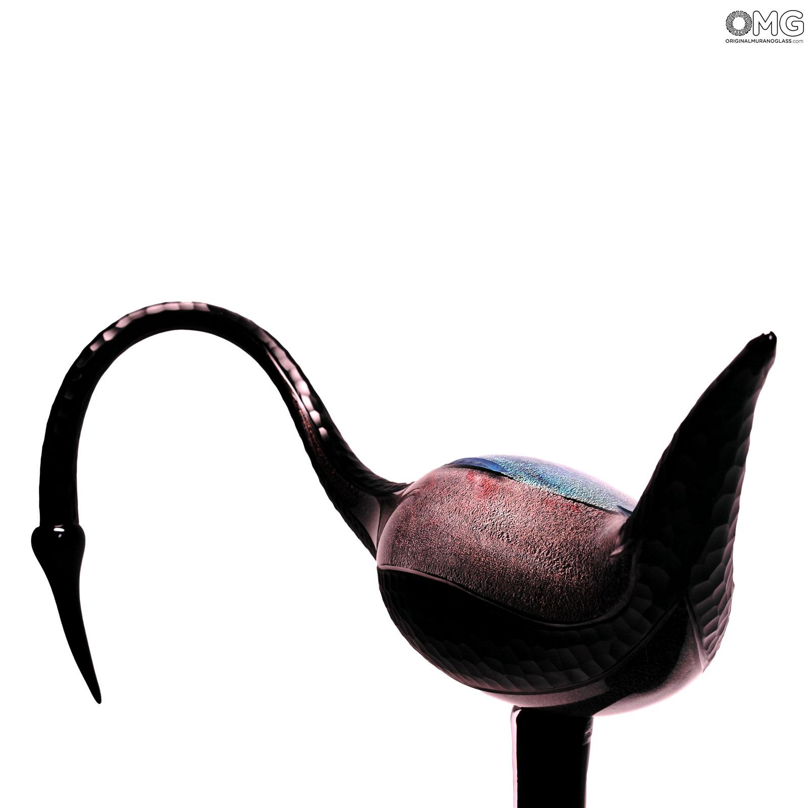 Scultura estremamente realistica di un uccello grù realizzata con la tecnica della modellazione del vetro a caldo con vetro trasparente puro e preziose decorazioni in dicroico. Questo è probabilmente l'opera più preziosa e straordinaria che puoi trovare nel nostro negozio e nei dintorni di Murano.