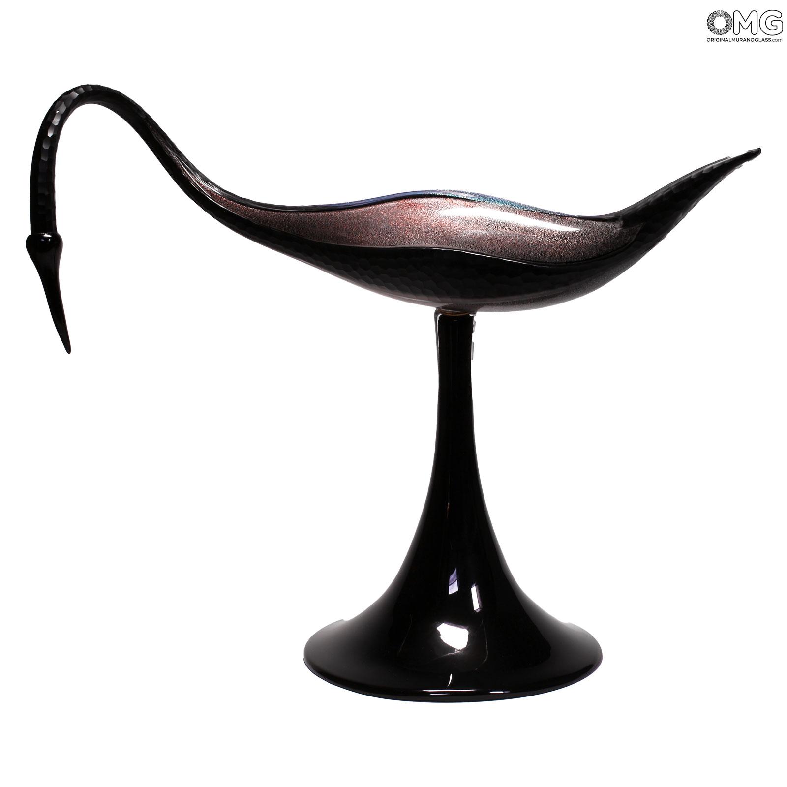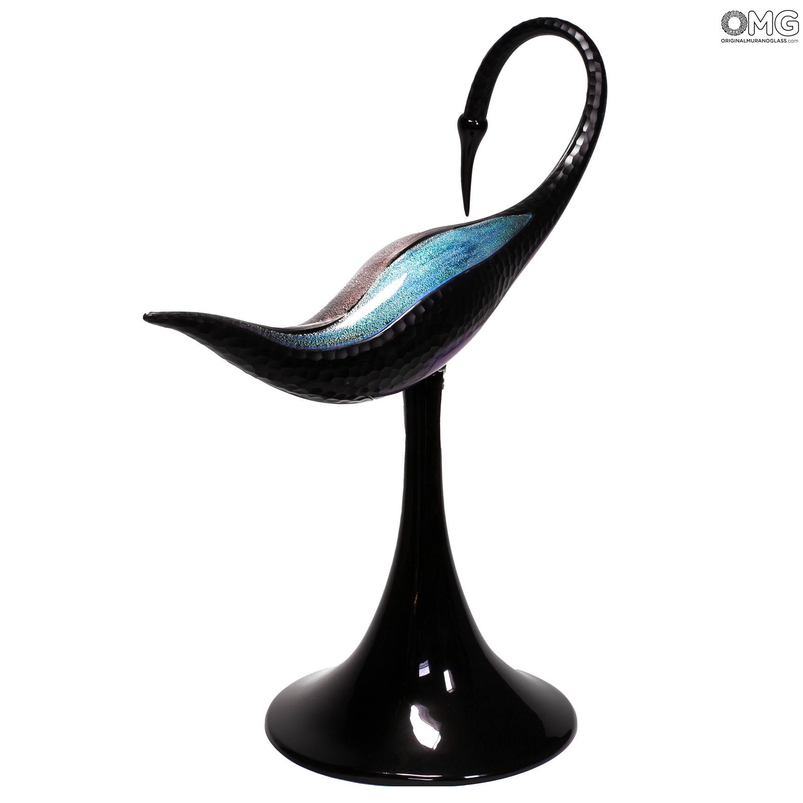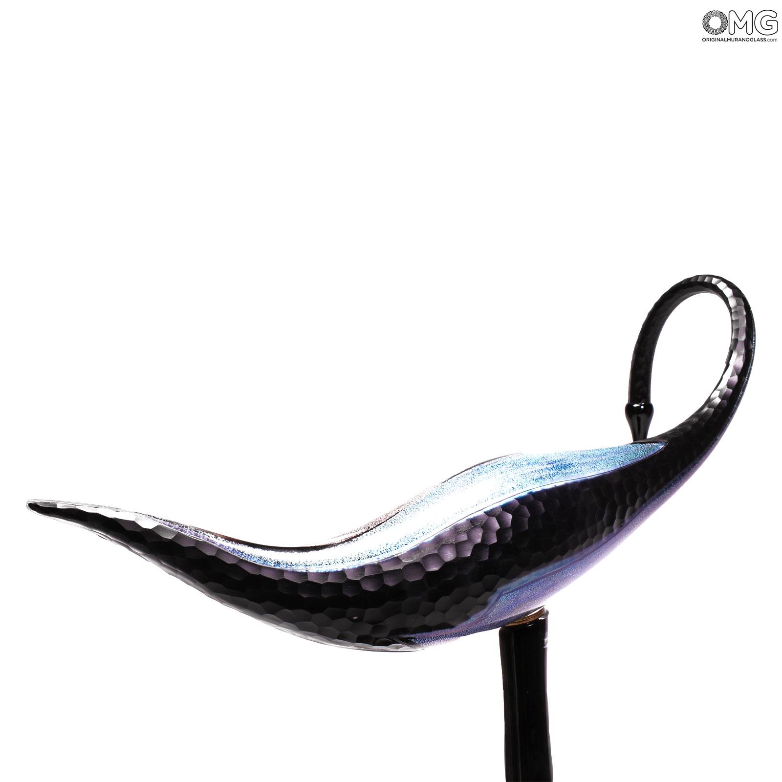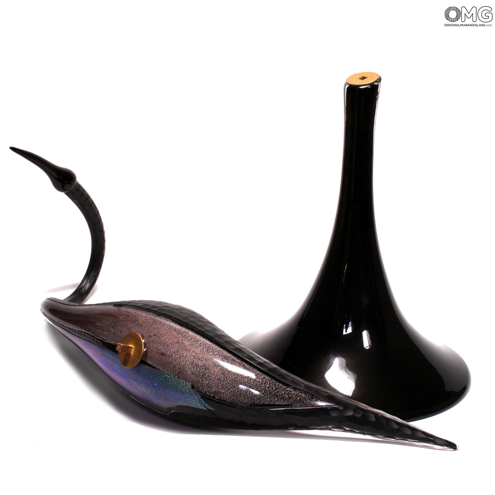 Scultura estremamente realistica di un uccello grù realizzata con la tecnica della modellazione del vetro a caldo con vetro trasparente puro e preziose decorazioni in dicroico. Questo è probabilmente l'opera più preziosa e straordinaria che puoi trovare nel nostro negozio e nei dintorni di Murano.