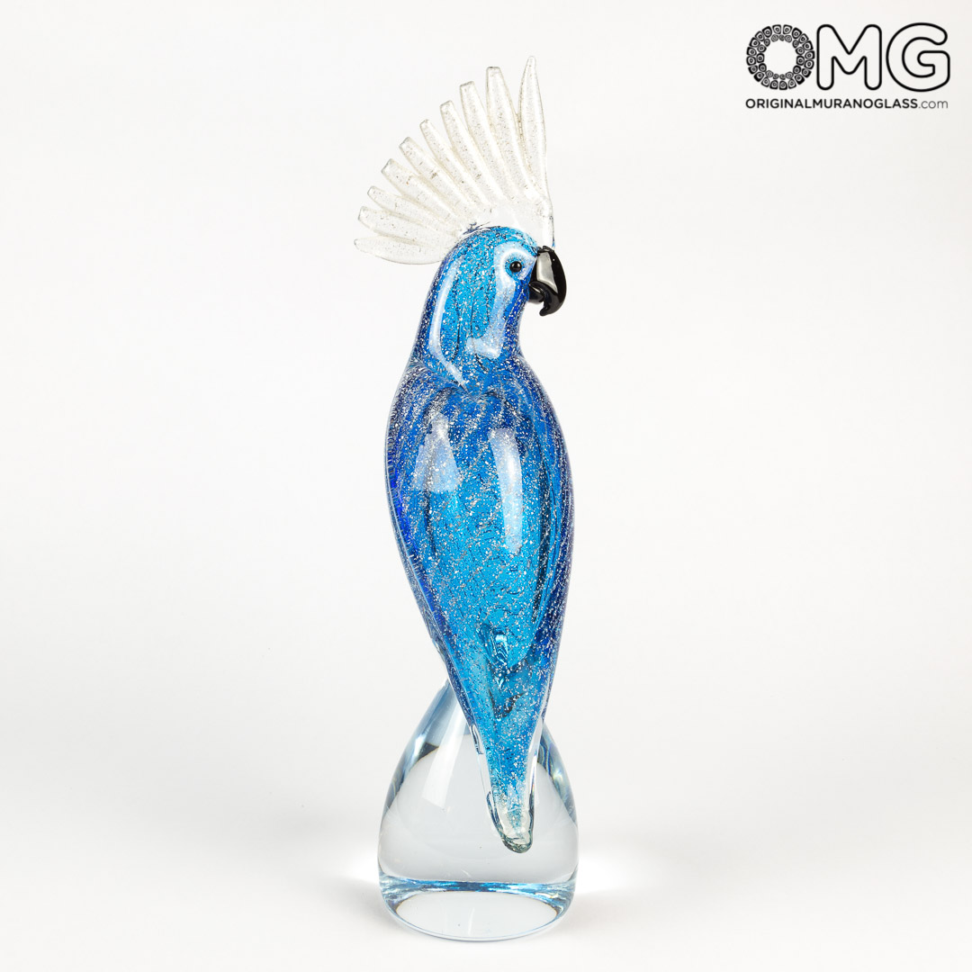 Pappagallo celeste - Modellato a Mano - Vetro di Murano Originale OMG