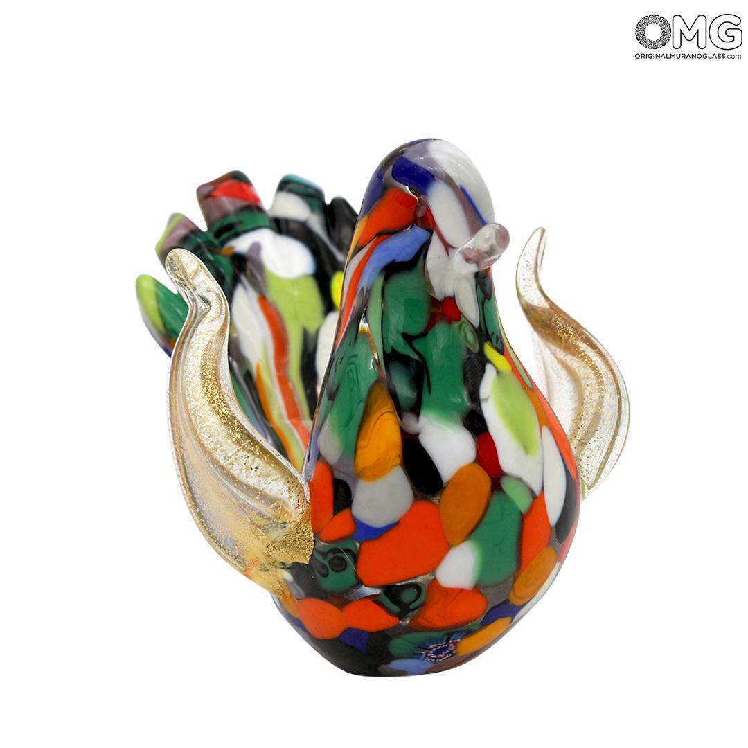 Mini figurina, scultura realizzata a mano a Murano con murrine stropicciate e in vetro cristallo e oro 24 carati nei dettagli. L'opera è realizzata interamente a mano e senza utilizzo di stampi, ogni pezzo è unico. Il prezioso oggetto è il migliore nel suo genere realizzati in Murano, in termini di qualità dei dettagli.