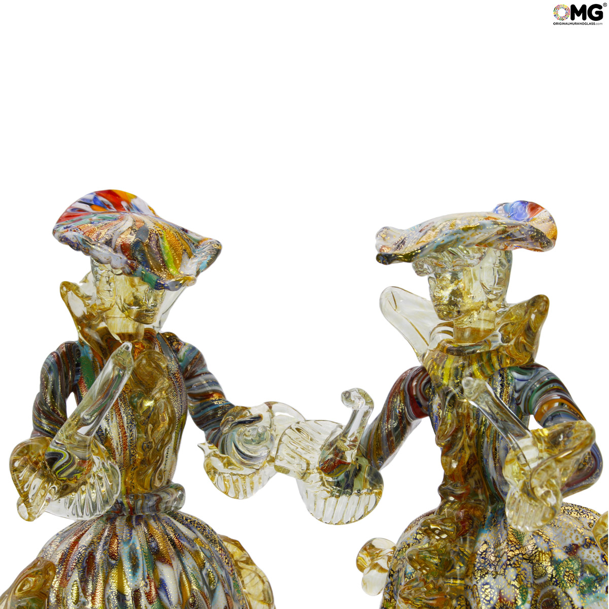Figure goldoniane Veneziane Dama e Cavaliere - Murrina e oro 24 kt