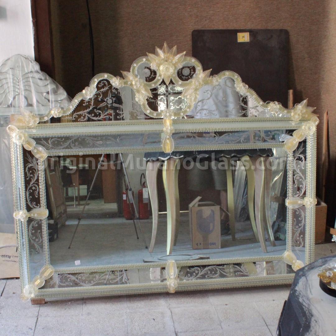 L'opera d'arte è disegnata e realizzata con cura nei dettagli dai nostri artigiani specchieri, dai maestri vetrai per gli abbellimenti in vetro di Murano, e falegnami.