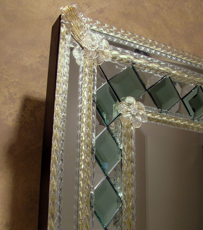 L'opera d'arte è disegnata e realizzata con cura nei dettagli dai nostri artigiani specchieri, dai maestri vetrai per gli abbellimenti in vetro di Murano, e falegnami.