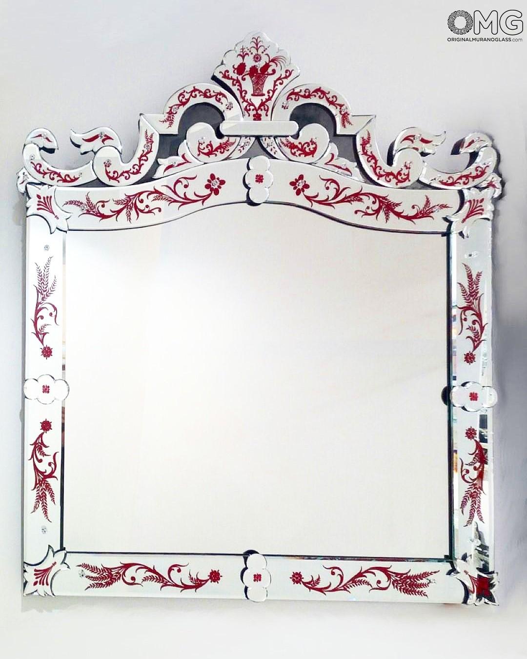 Lo specchio è composto da una decorazione floreale con dettagli dipinti rosso.