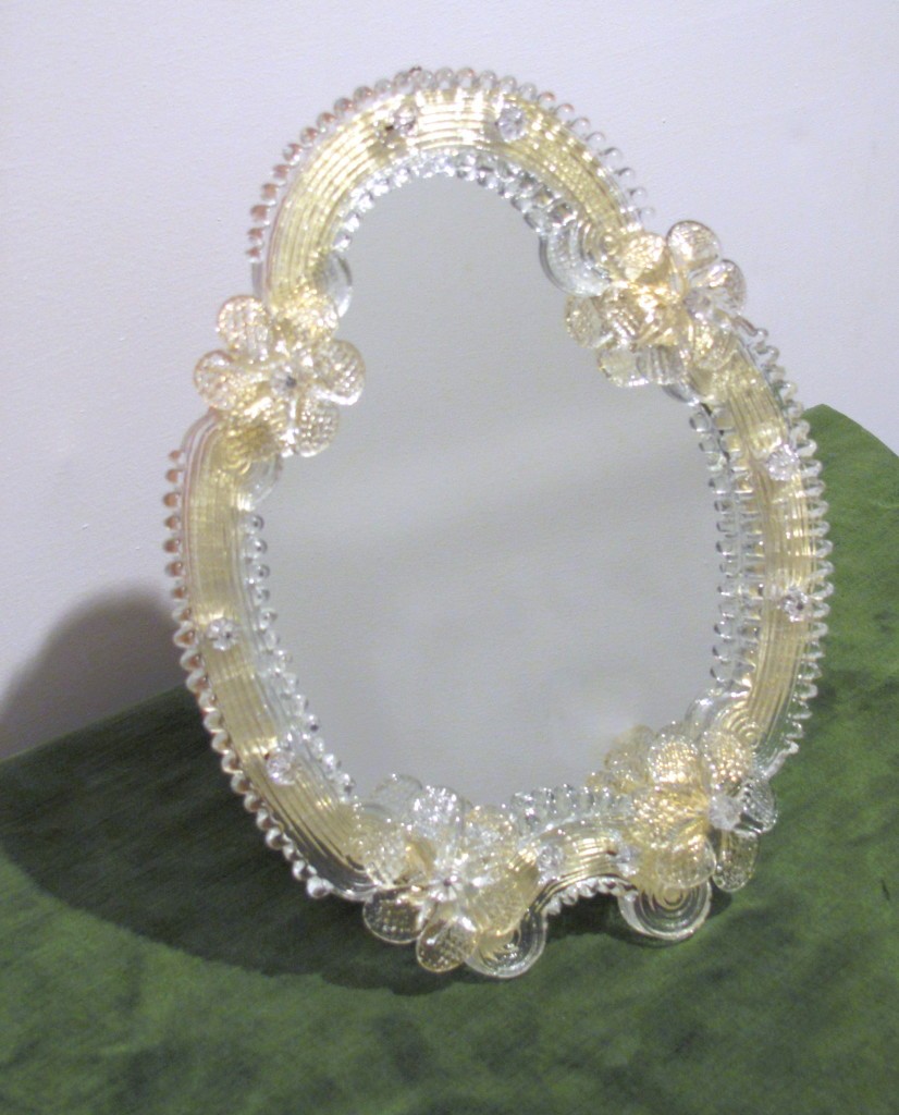 Specchio da tavolo veneziano, artigianale, realizzato a Murano.