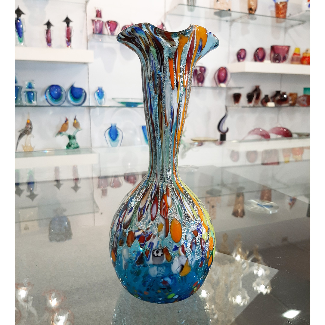Vaso Mughetto ALto - Azzurro - Vetro di Murano Originale OMG