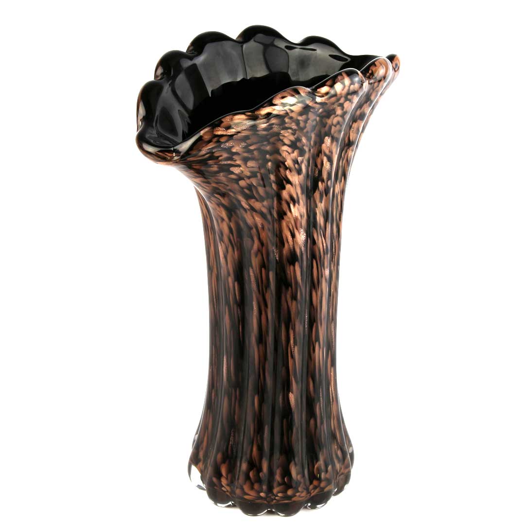 Vaso Flower - Nero e Avventurina - Vetro di Murano Originale OMG