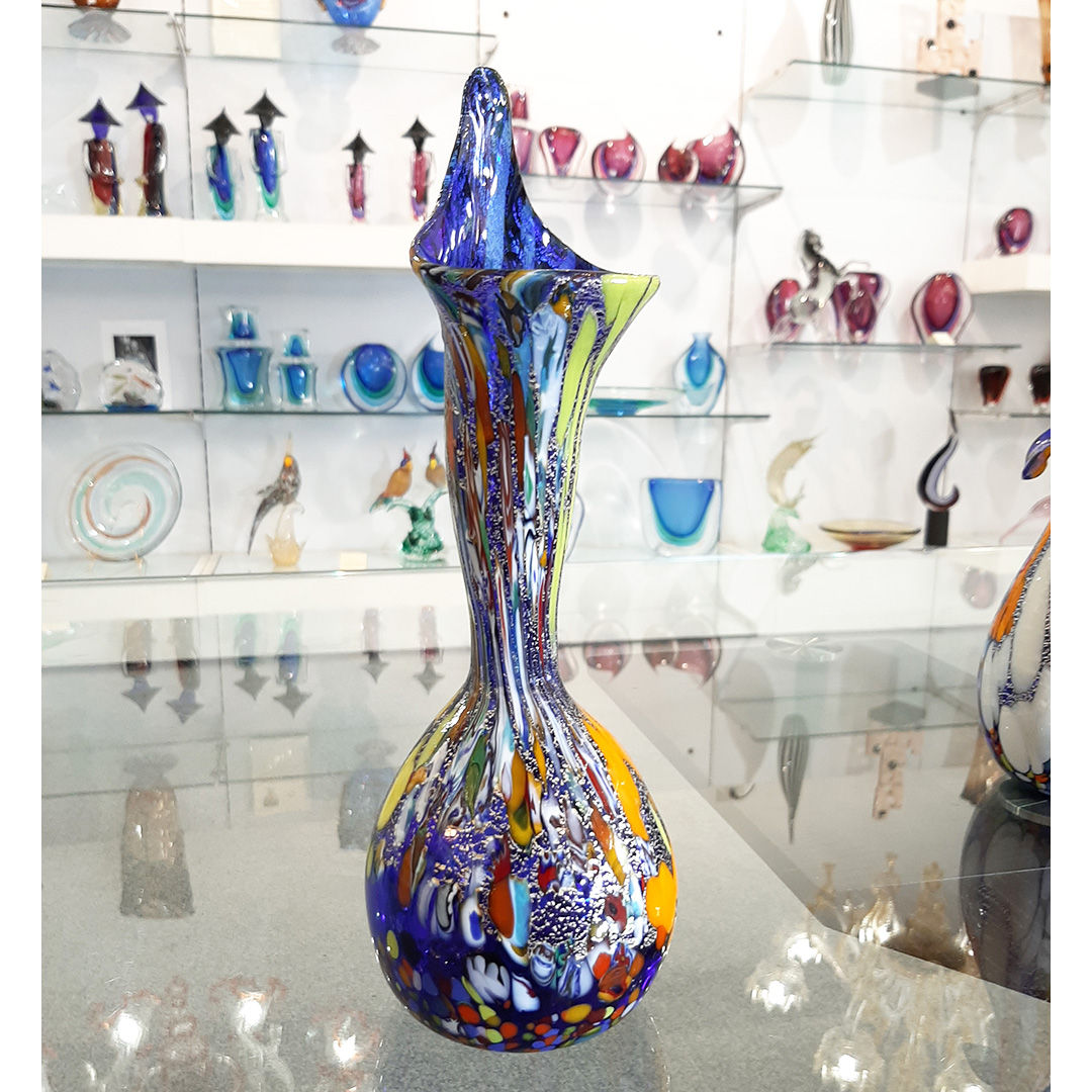 Vaso in vetro soffiato e decoro in murrina. Il vaso è firmato dal maestro con incisione a freddo