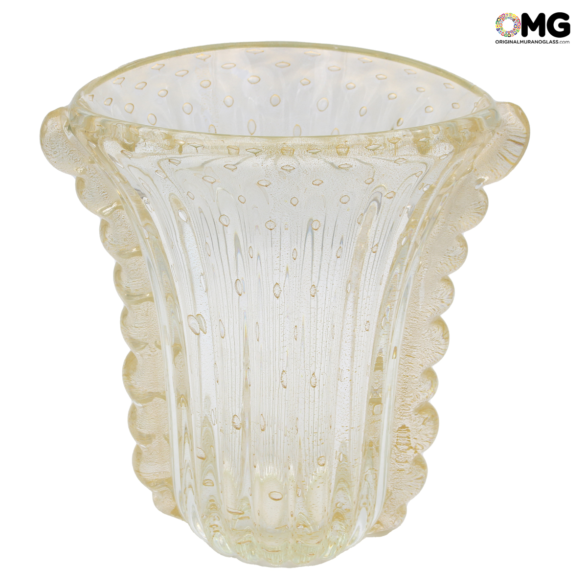 Vaso realizzato con la tecnica del sommerso. Pezzo d'arte di eleganza realizzato in vetro di Murano arricchito da vera foglia d'oro.