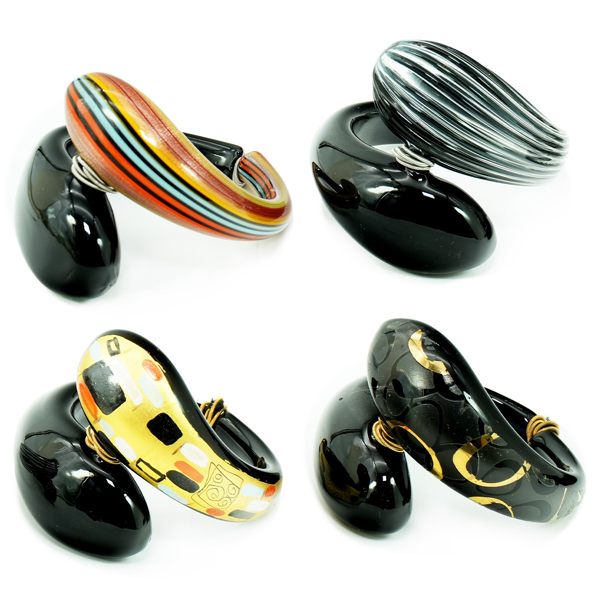 Elegant bracelt for design lovers and not only. The jewellery are blown glass handmade in lamp worked technique. Very light weight because empty inside.