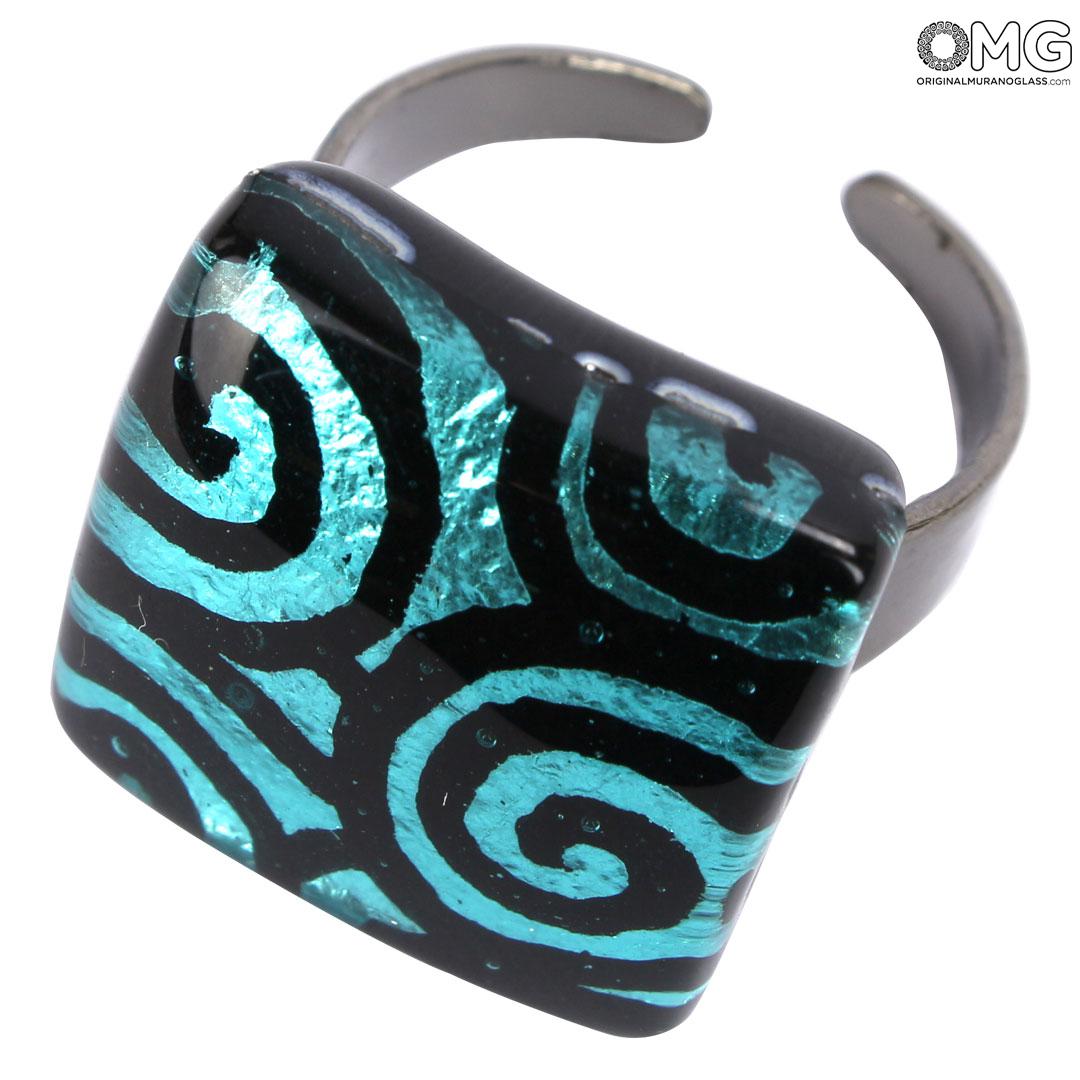 Glass ring made with hot modeling technique and engraved silver leaf. Handmade in Murano glass.