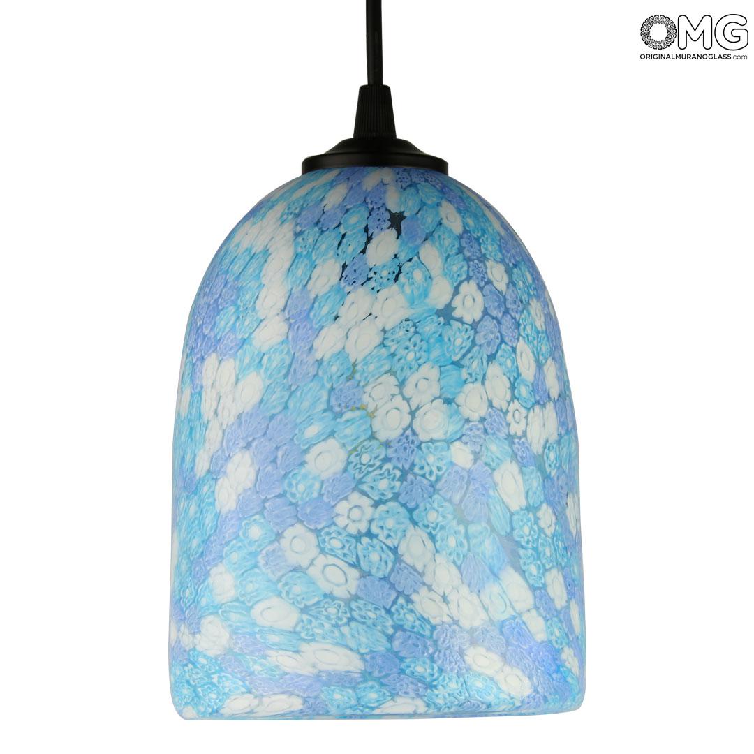 Hanging Lamp Millefiori - Light Blue - Original Murano Glass