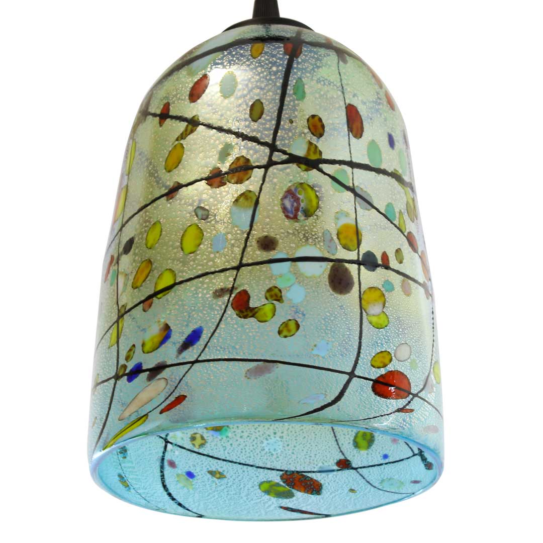 Suspension hanging lamp hand made and blown with real silver leaf.
