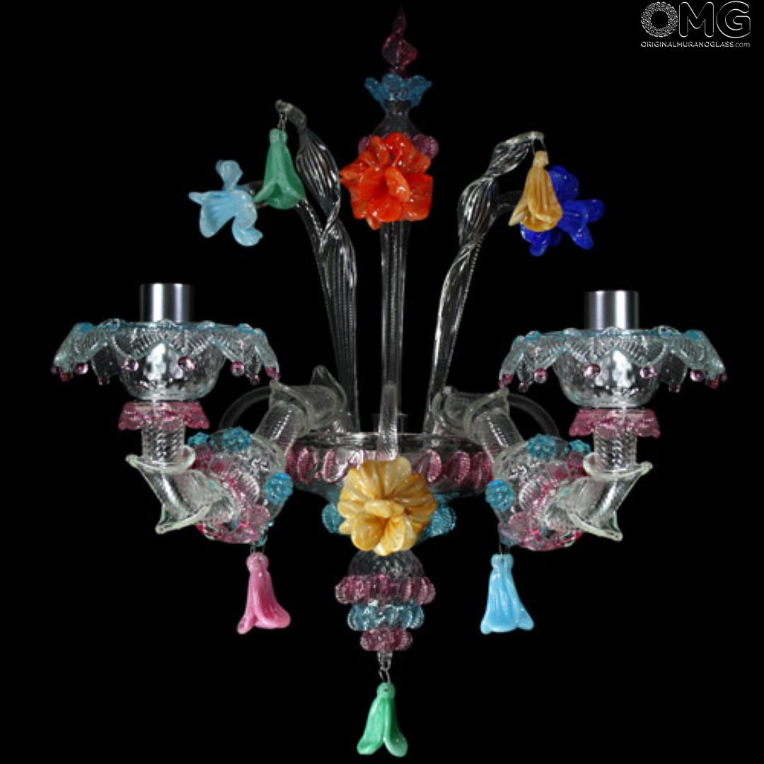 The artwork is a floral wall lamp, at Venetian style, this Murano chandelier enriches any interior room with elegance; Ideal vintage room style.All our chandelier are unique handmade.