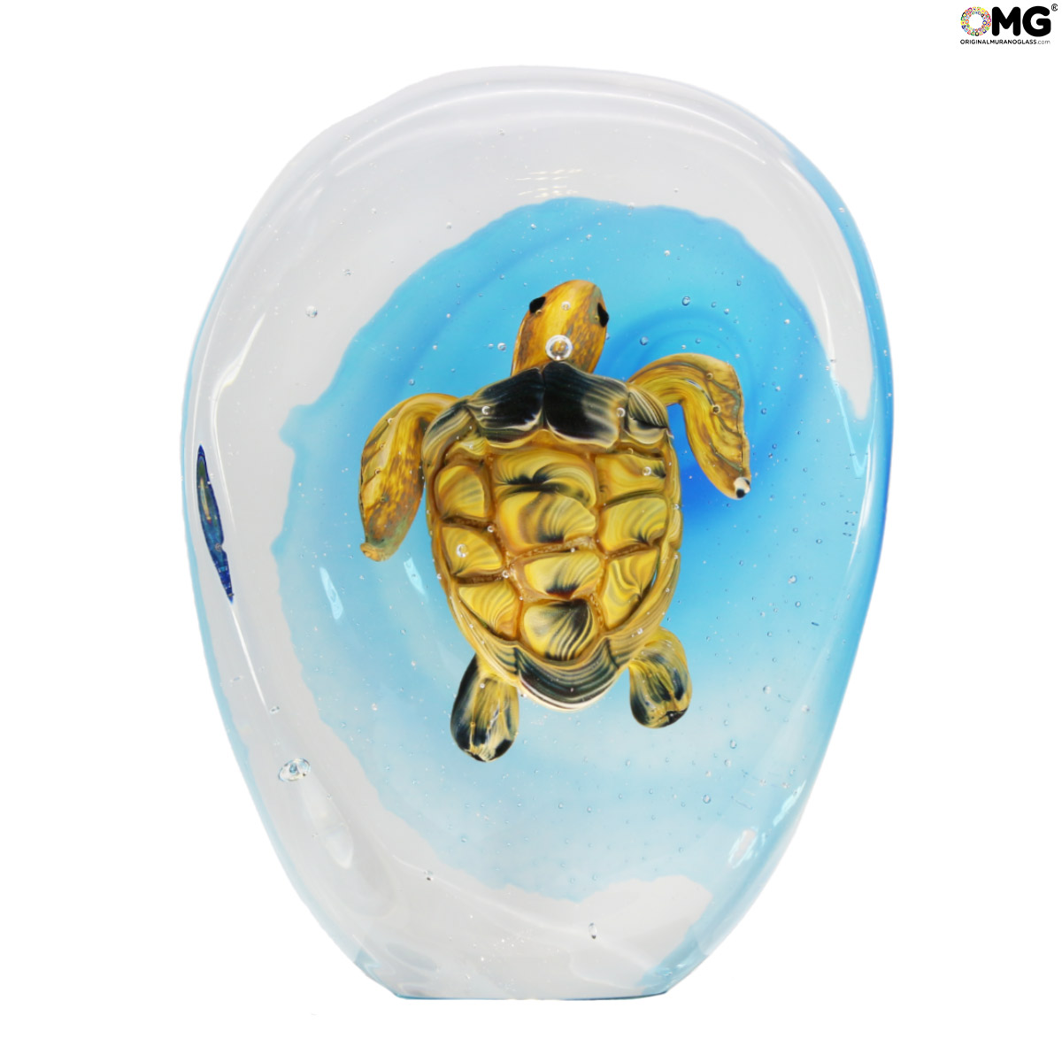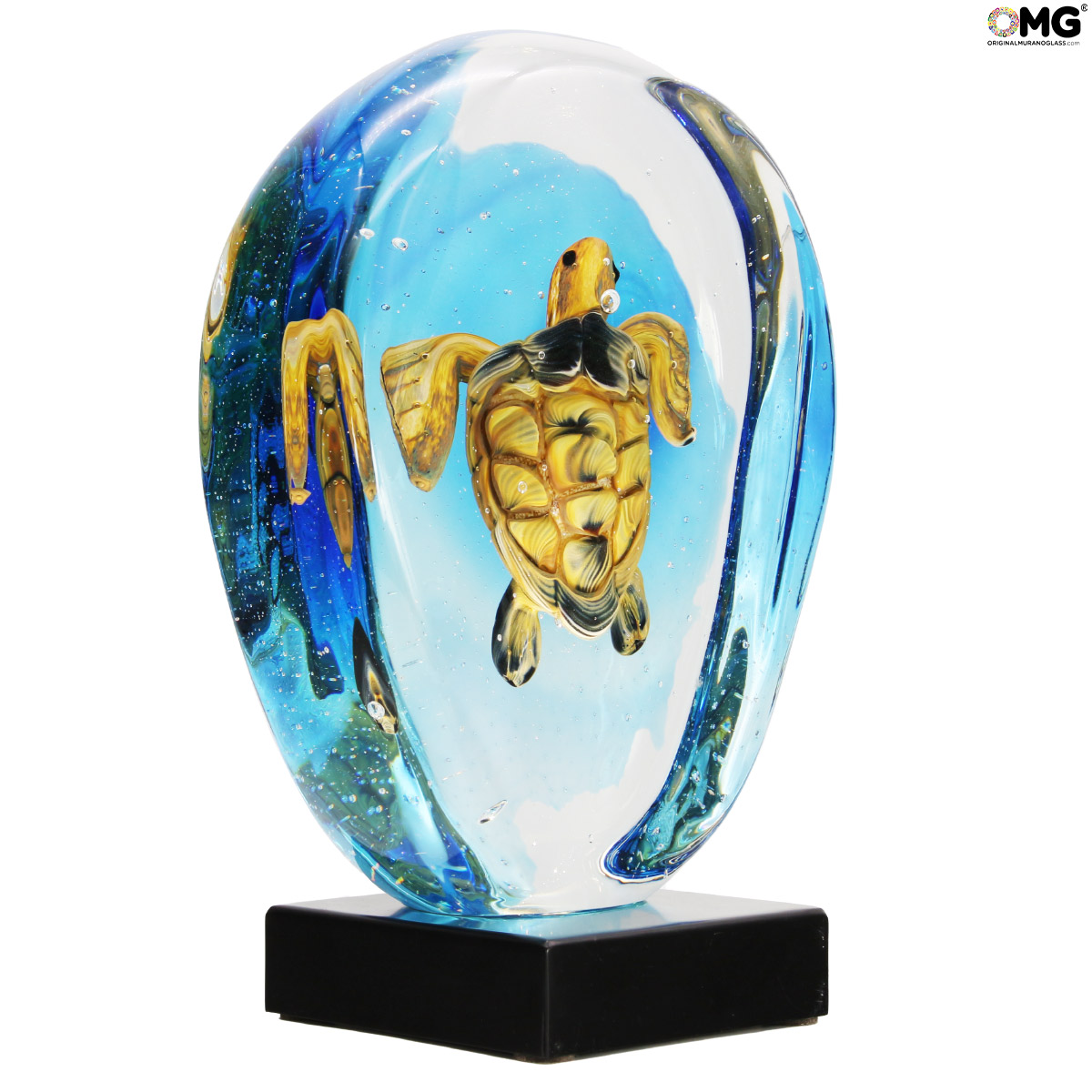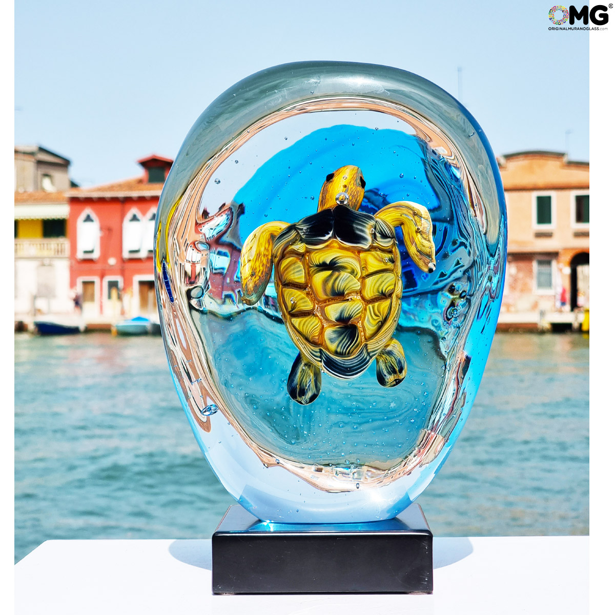 Luxury sea turtle sculpture handmade with the famouse technique of glass Sommerso, realized in Murano Glass.