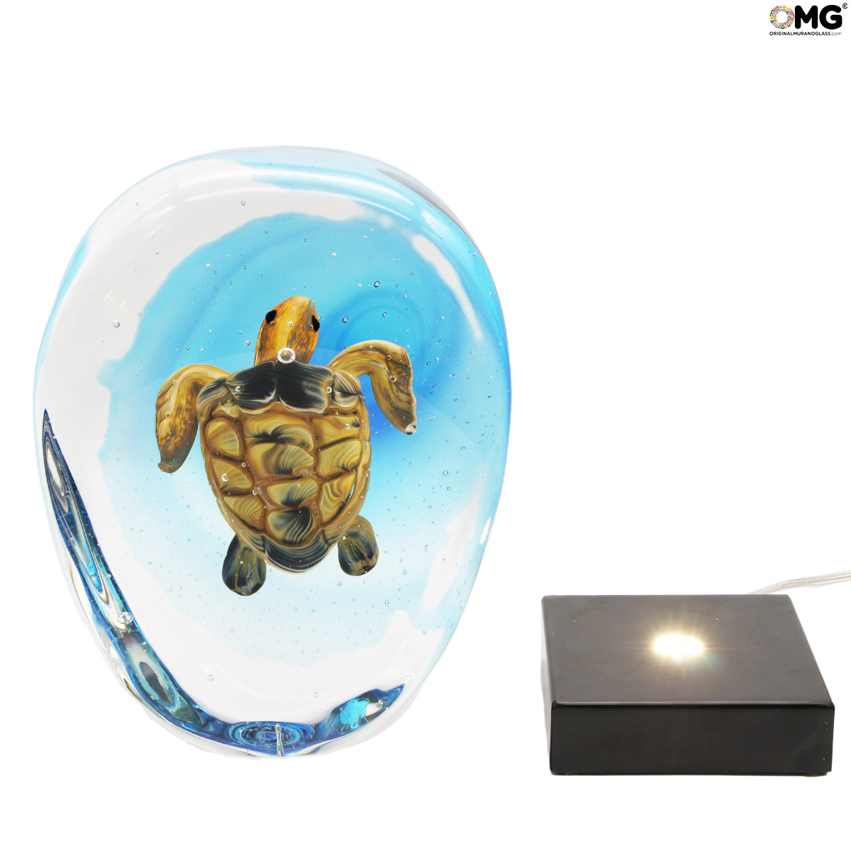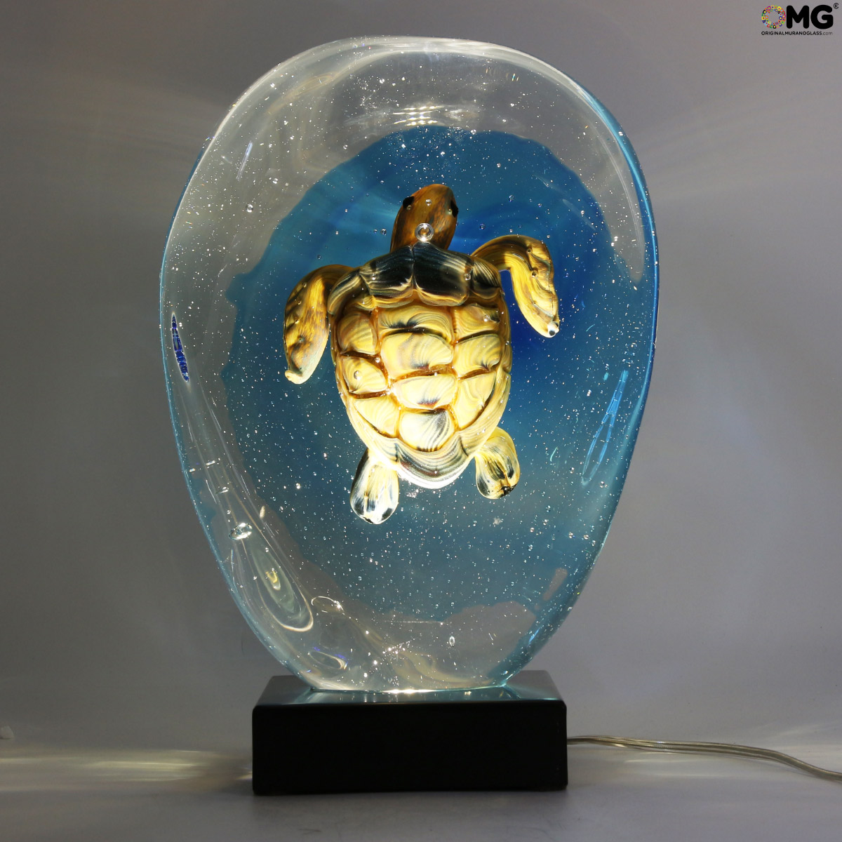 Meeresschildkröte – Sommerso-Skulptur mit LED-Leuchte – Original Murano-Glas