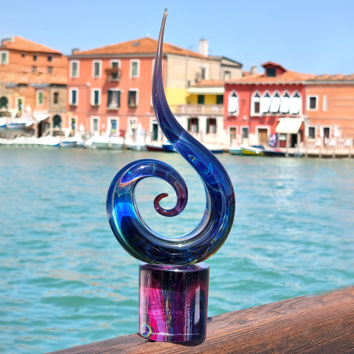 Particularly difficult to realize, chalcedony glass has the peculiarity of joining the canonical glass sphere with silver salts and other coloring oxides: this extraordinary chemical process, coupled with the talent of the Masters of Murano, allows the creation of wonderful works in which an opaque background is streaked with enchanting warm and dark shades, a real turbine of lights and shadows capable of ravishing even the eyes of the most experienced observer.