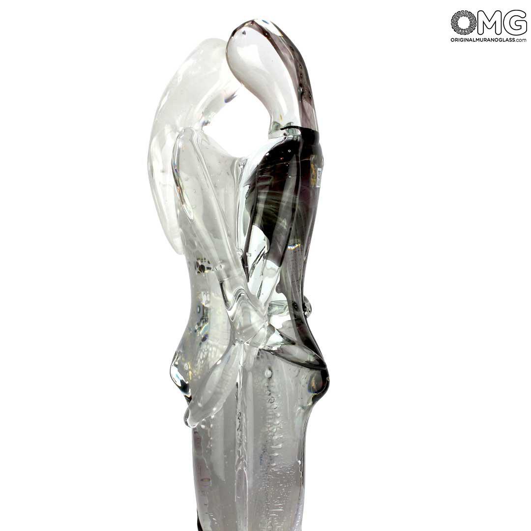 Lovers bust sculpture made with the technique of warm glass modellation and sbruffy style techniques. All traditional techniques of the venetian glass history perfectly executed by our glass master. Glass is molten in black and white. Handmade for our selection of lovers sculptures. The best gift idea for lovers, valentine's day and wedding.
