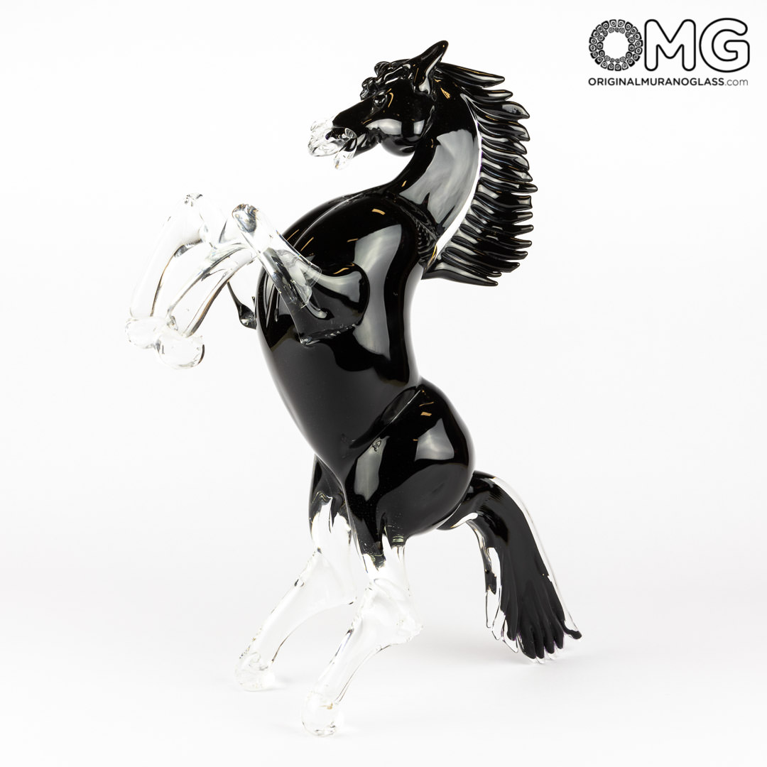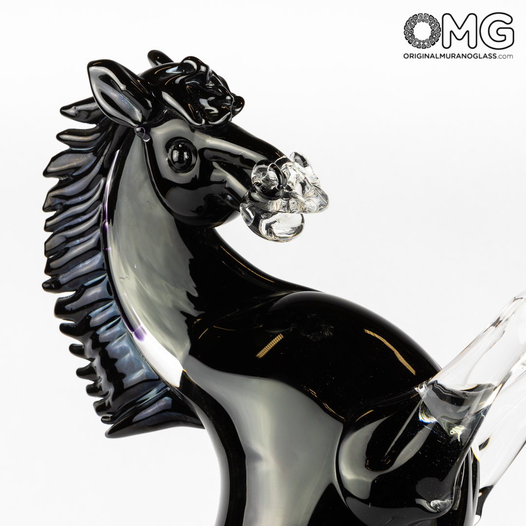 Fantastique and exclusive handmade horse with the technique of glass warm modellation in black.