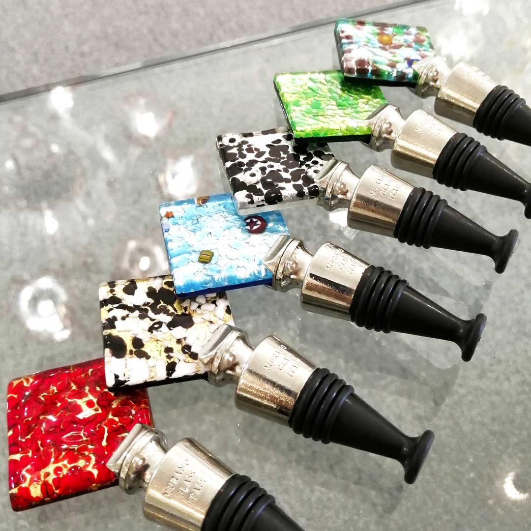 Handgefertigter Flaschenverschluss aus Original-Murano-Glas, hergestellt im Fusing-Verfahren, mit einer Mischung aus Millefiori-Farben.