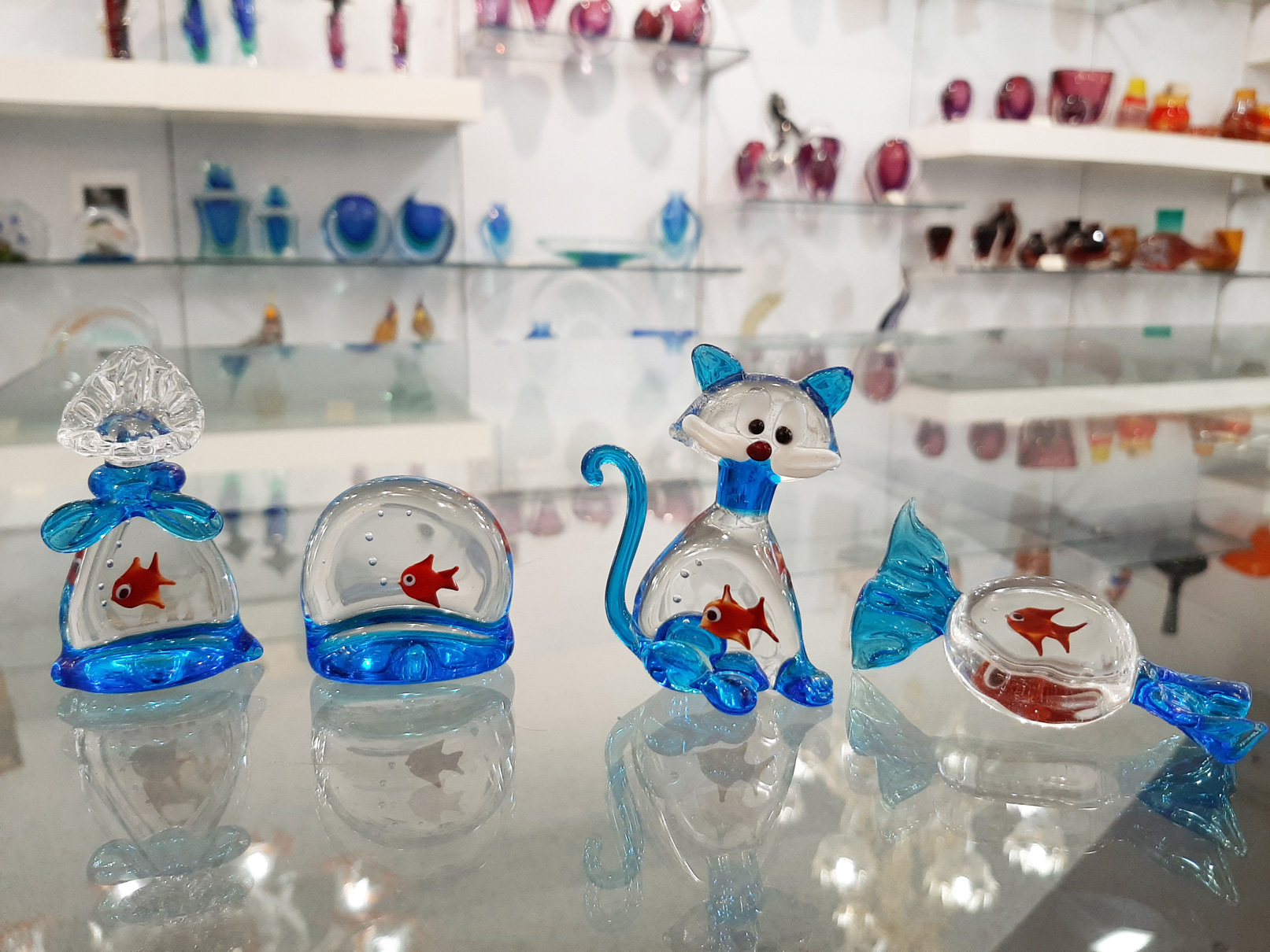Each figurine is crafted by our glass masters: first they create the little fish, then it is embedded into a solid glass block at high temperature.