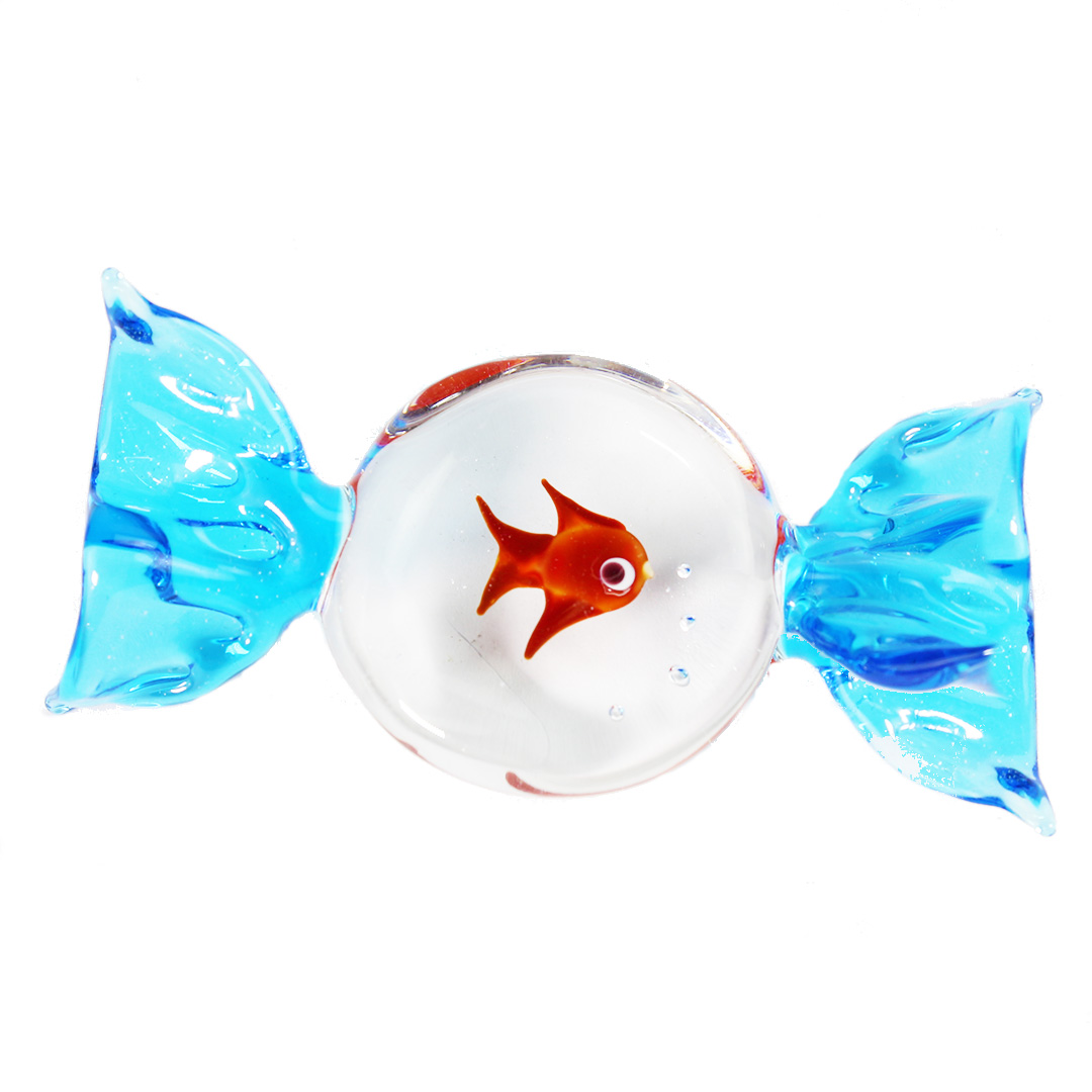 This little candy-shaped Murano glass aquarium artwork is perfect as a gift idea, or as a decorative gadget to embellish your desk, office or home space with authentic Venetian glass art.