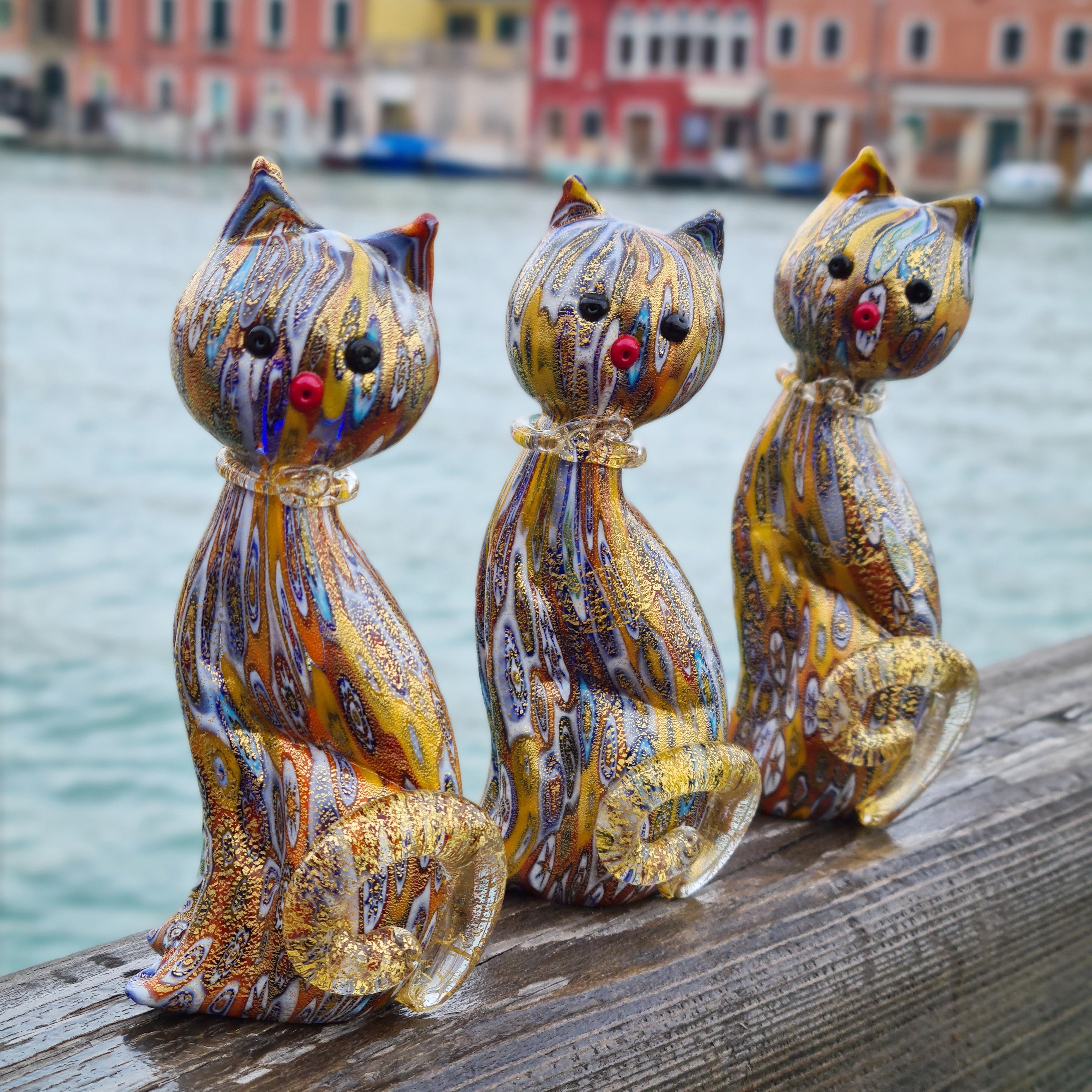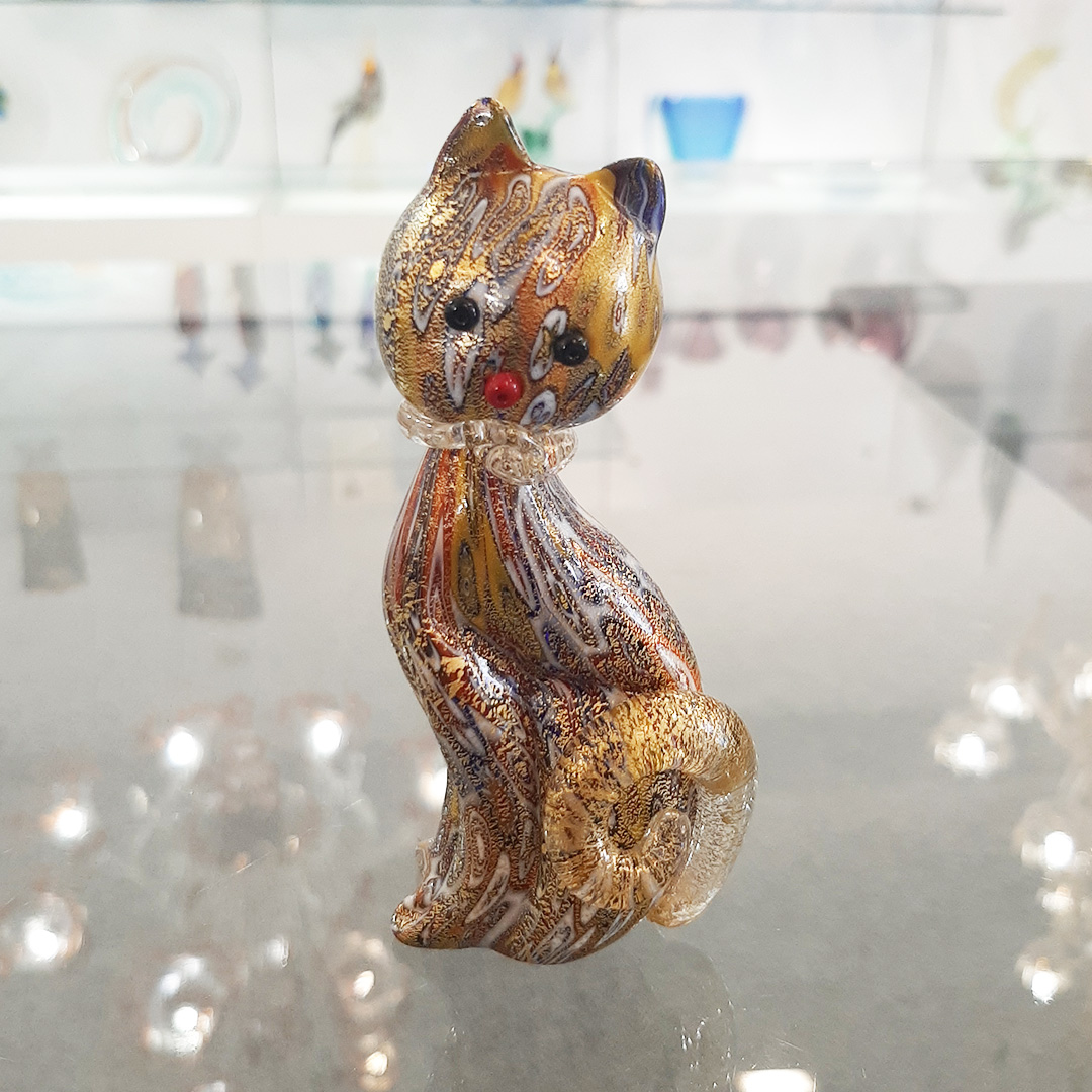 Katzenfigur aus Murrine Millefiori in Gold – Tiere – Original Murano-Glas OMG