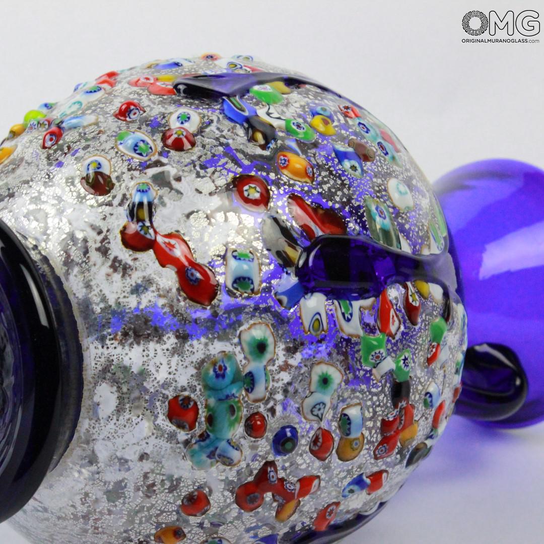 Glycine – Blaue Vase aus Murano-Glas mit Millefiori-Muster
