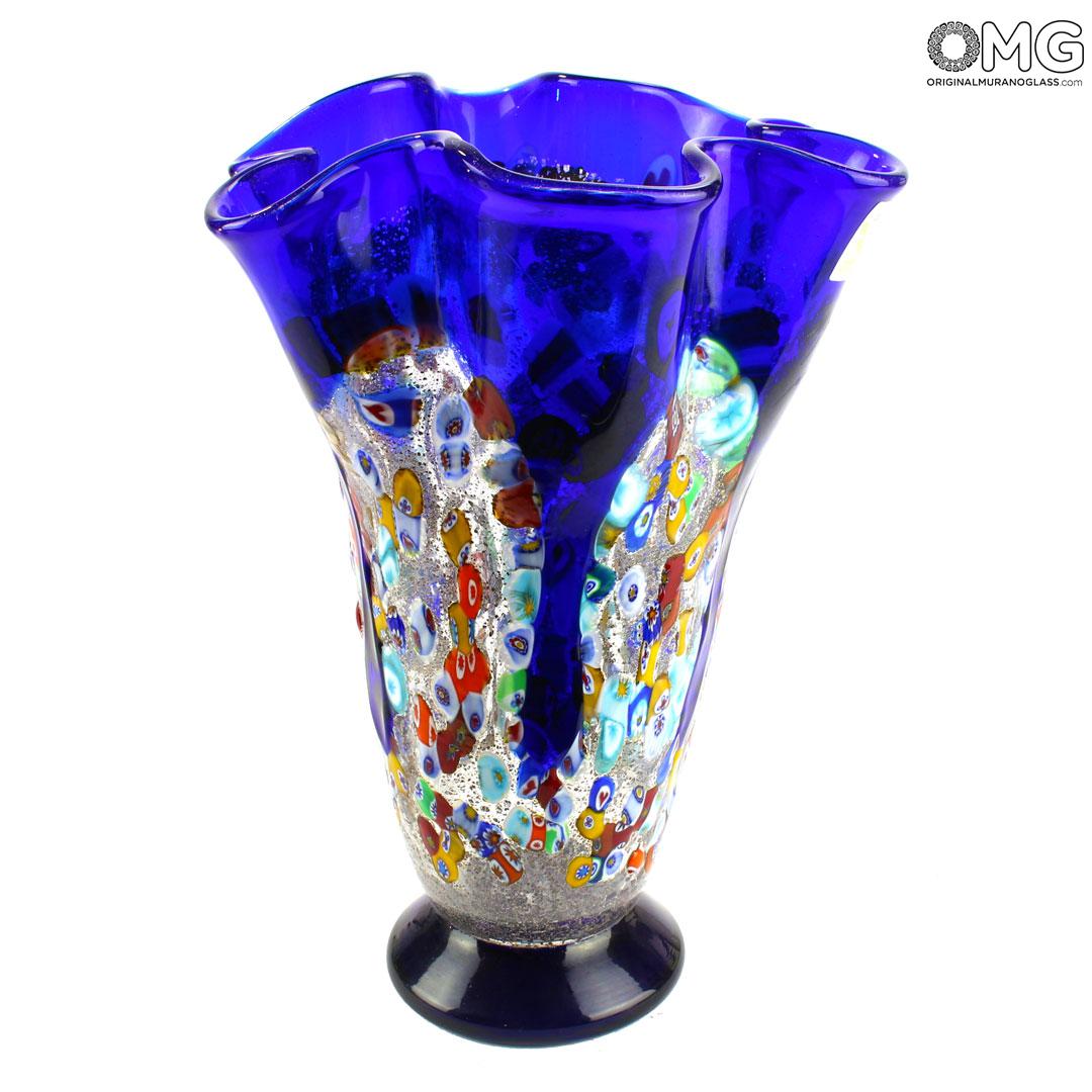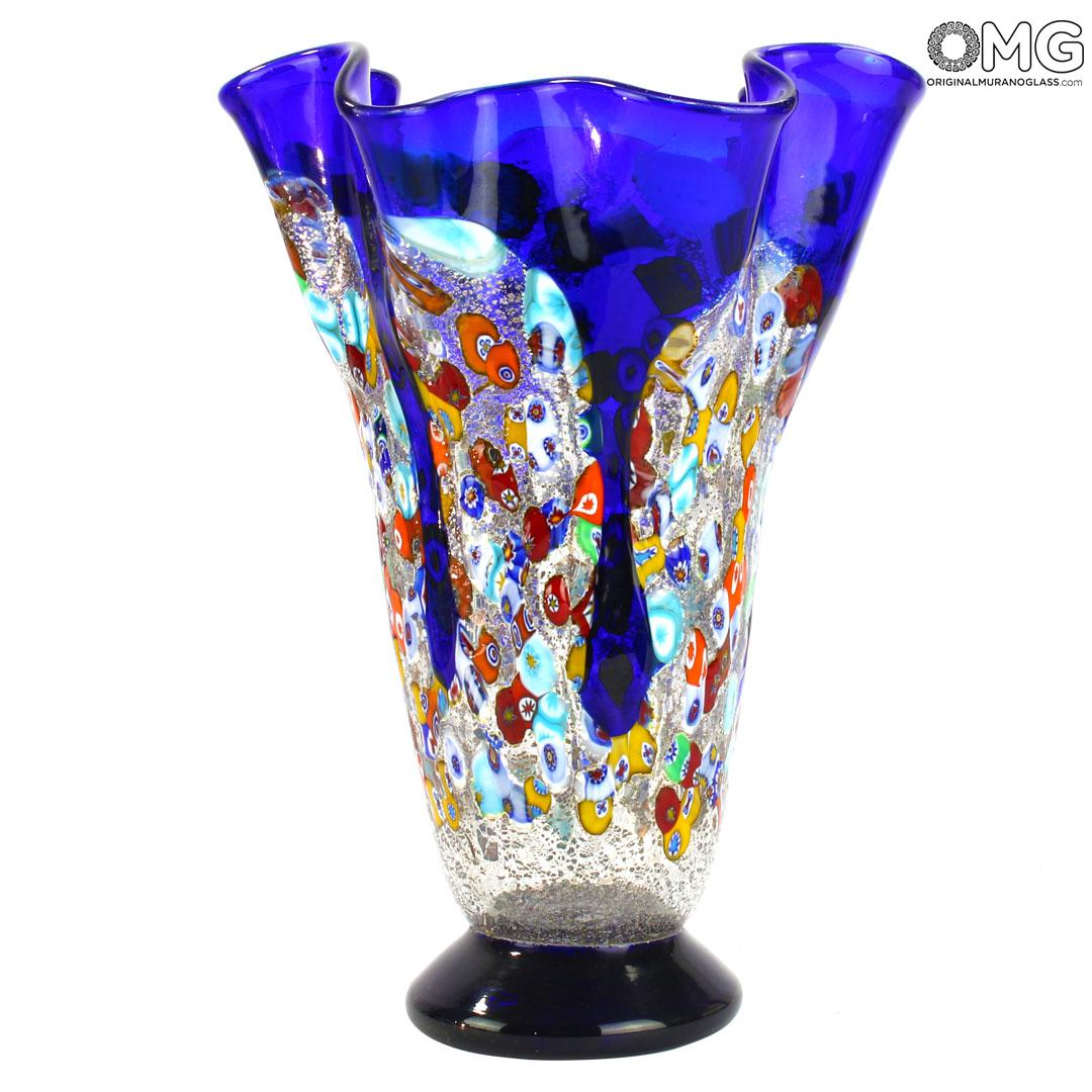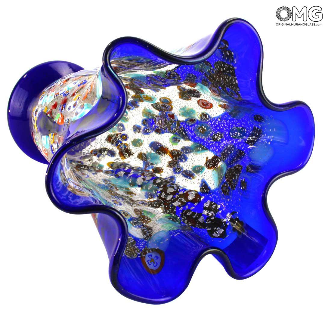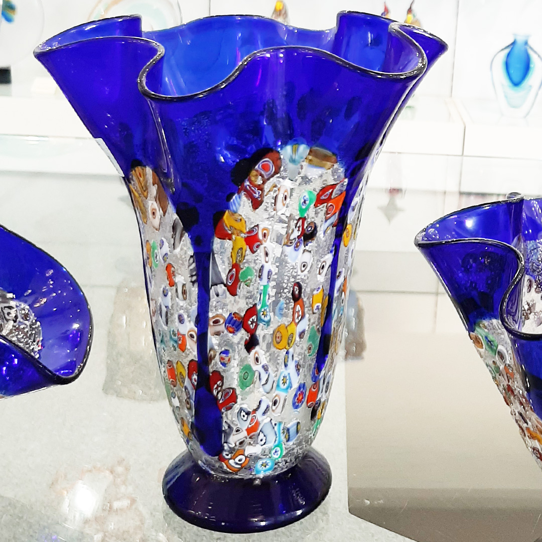 The amazing look of millefiori glass is further enhanced by the unique "fazzoletto" shape (which means "handkerchief" in Italian), invented by Murano masters to achieve exquisite weightlessness and elegance of handkerchief folds in glass..