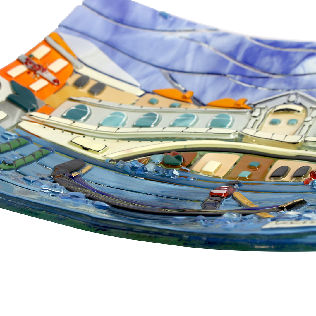 Handmade Venetian Murano glass plate with Rialto Bridge decoration