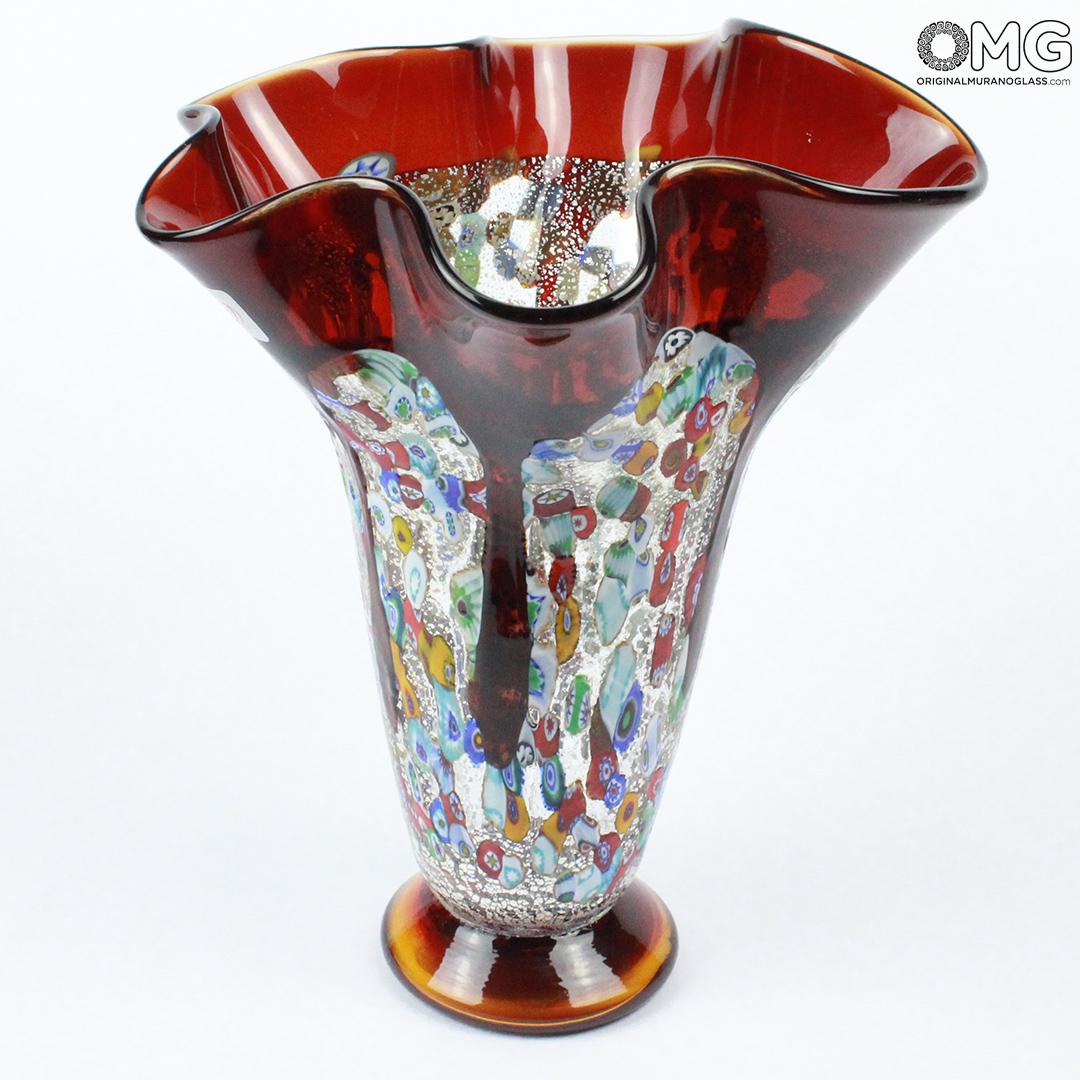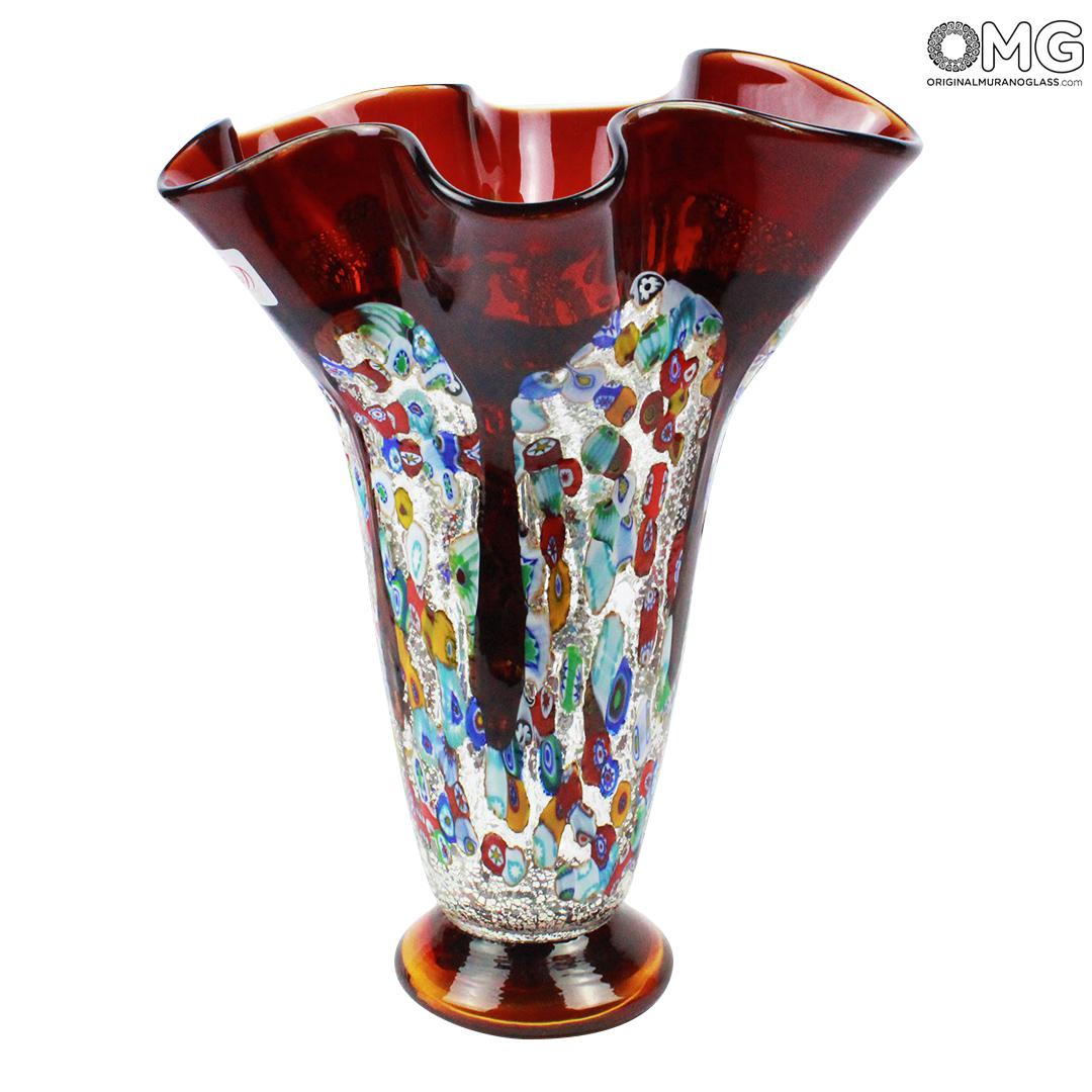 The amazing look of millefiori glass is further enhanced by the unique "fazzoletto" shape (which means "handkerchief" in Italian), invented by Murano masters to achieve exquisite weightlessness and elegance of handkerchief folds in glass..