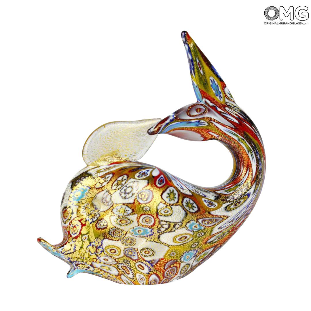 Whale Figurine in Murrine Millefiori Gold - Animals - Original Murano glass