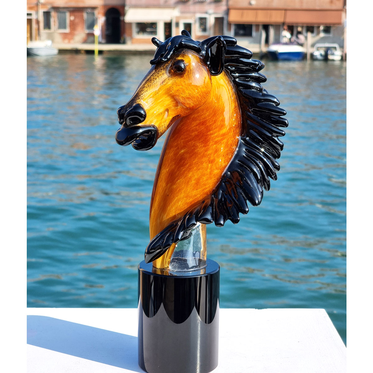 Experience the timeless elegance of Venetian artistry with our stunning Murano Glass Horse Head Sculpture. Meticulously handcrafted by master artisans on the island of Murano, Italy, this piece embodies the perfect fusion of tradition, skill, and artistic expression.