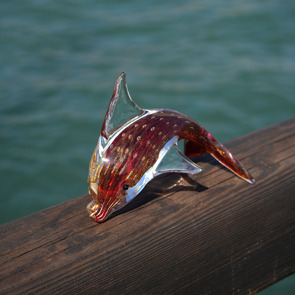 Dolphin Figurine - Red and Gold - Original Murano Glass Omg