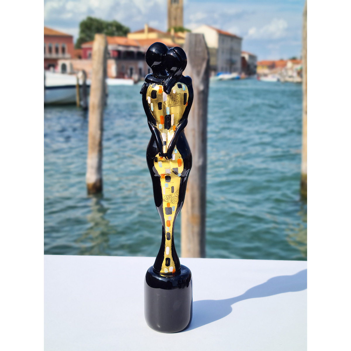 Lovers Sculpture Black - Klimt Decoration - Original Murano Glass