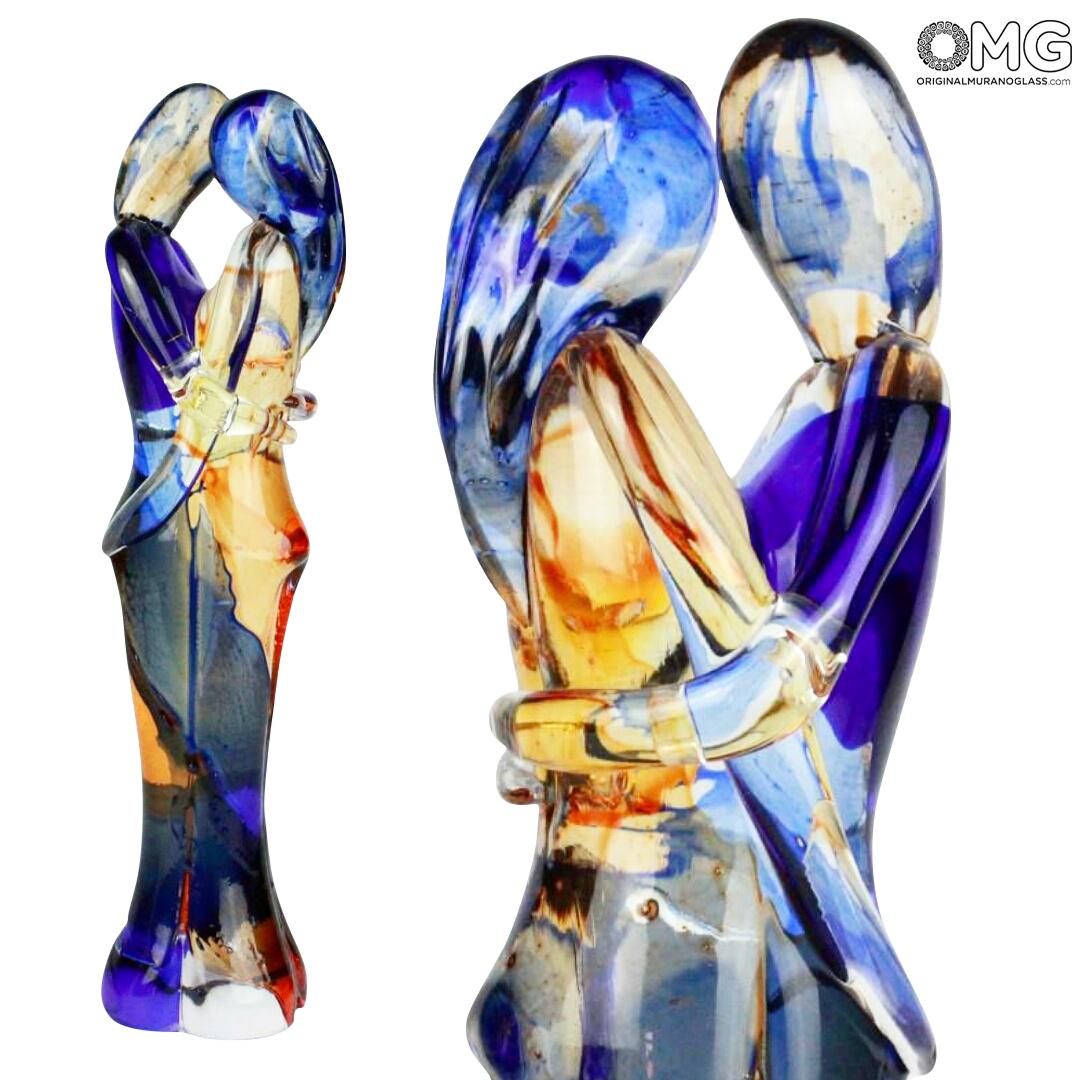 Handmade Murano glass embracing sculpture - authentic Venetian Art