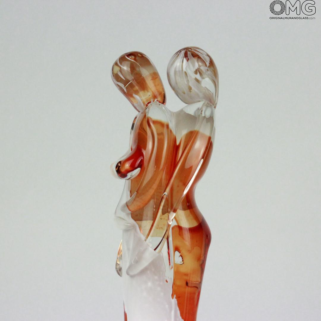 Lovers Sculpture - OneLove - orange decoration -.Original Murano Glass OMG