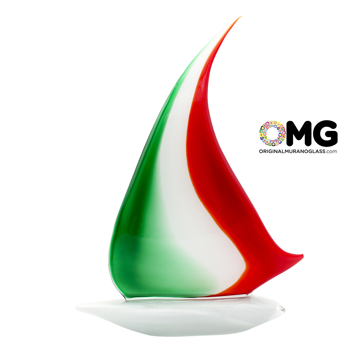 Sail Boat Italy Flag - Original Murano Glass sculpture