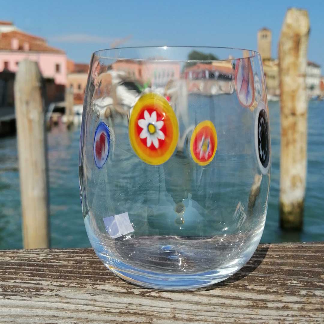 Cool set of 6 glasses made with the technique of glass blowing and millefiori murrine.
