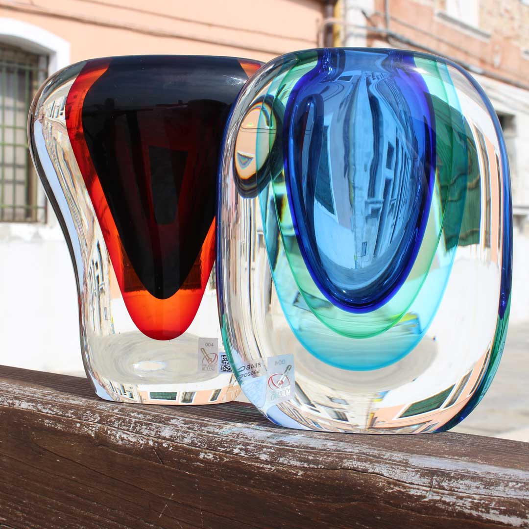 Authentic Murano glass vase made using the submerged technique