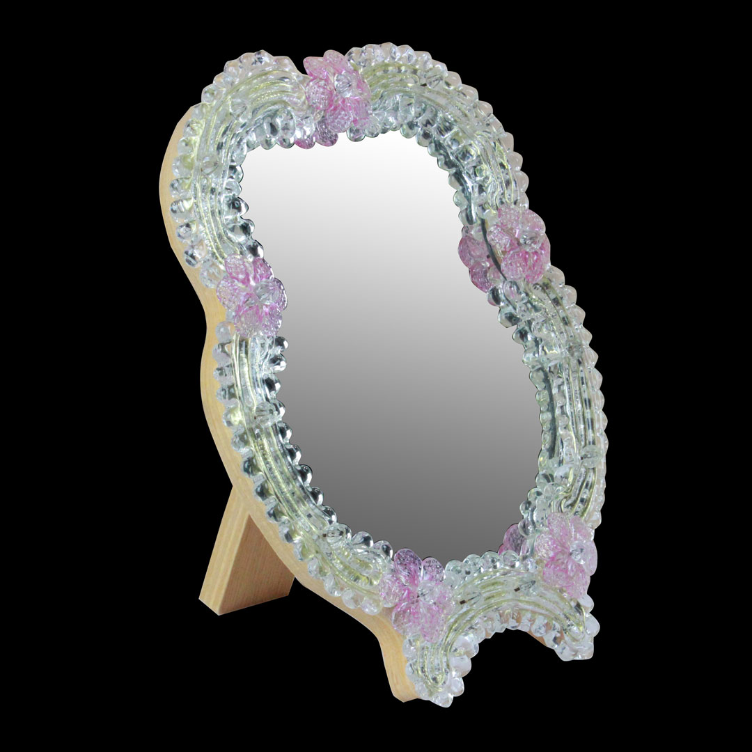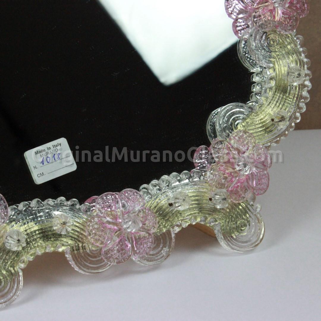 The frame mirror consists of flower and leaves decoration made in authentique Murano glass.